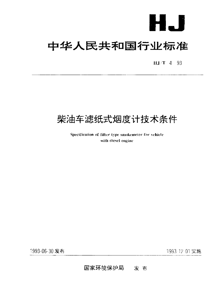 HJ/T 4-1993 柴油车滤纸式烟度计技术条件