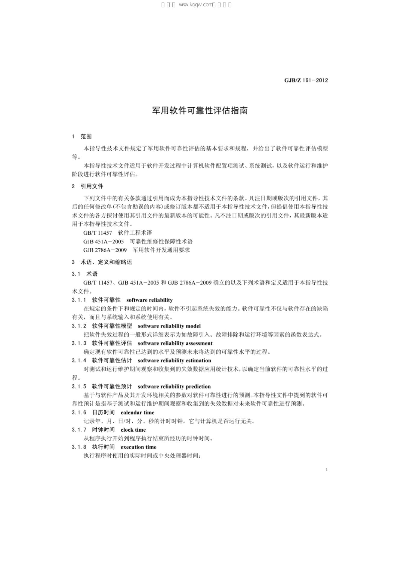 GJB/Z 161-2012 军用软件可靠性评估指南