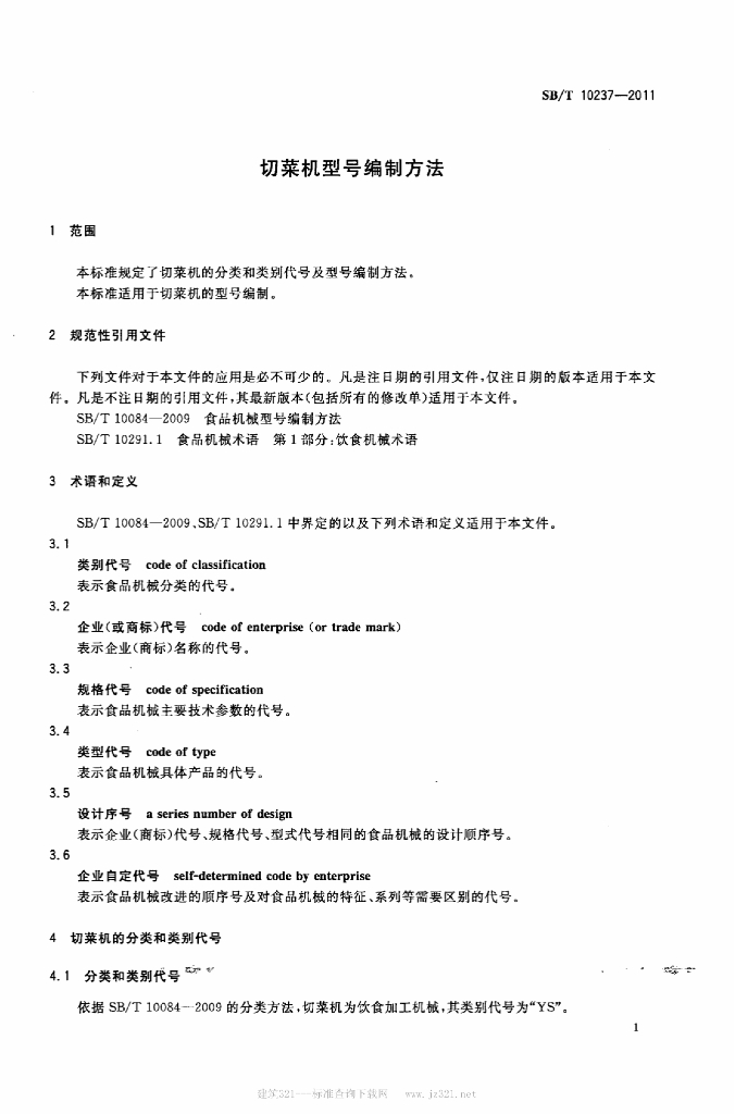 SB/T 10237-2011 切菜机型号编制方法
