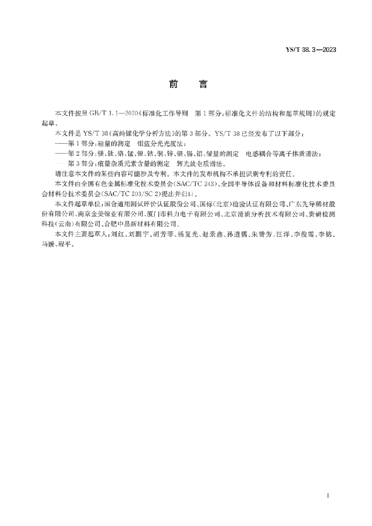 - 提出单位:全国有色金属标准化技术委员会、全国半导体设备和材料标准化技术委员会材料分技术委员会