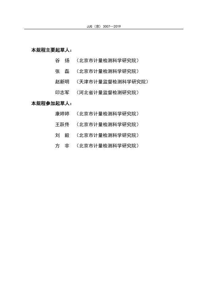 谷扬(北京市计量检测科学研究院)、张磊(北京市计量检测科学研究院)、赵新明(天津市计量监督检测科学研究院)、印志军(河北省计量监督检测研究院)、康婷婷(北京市计量检测科学研究院)、王跃佟(北京市计量检测科学研究院)、刘毅(北京市计量检测科学研究院)、方非(北京市计量检测科学研究院)