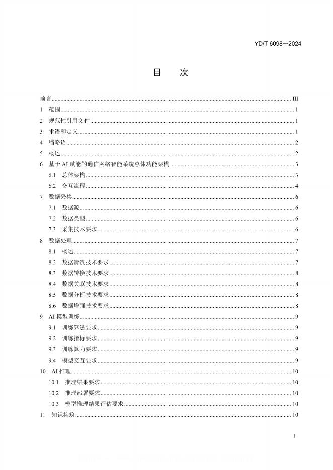 YD/T 6098-2024 基于AI赋能的通信网络架构和AI通用能力技术要求