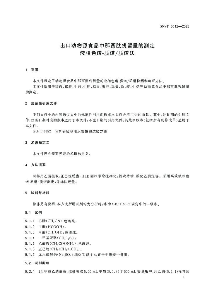 SN/T 5512-2023 出口动物源食品中那西肽残留量的测定 液相色谱-质谱/质谱法