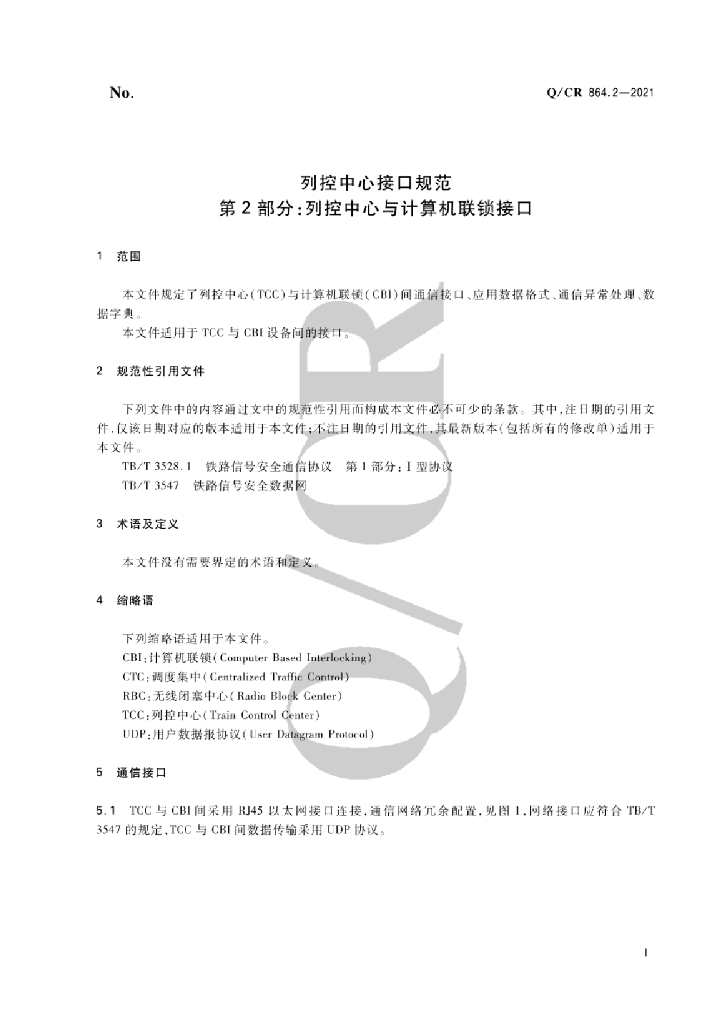 Q/CR 864.2-2021 列控中心接口规范 第2部分:列控中心与计算机联锁接口