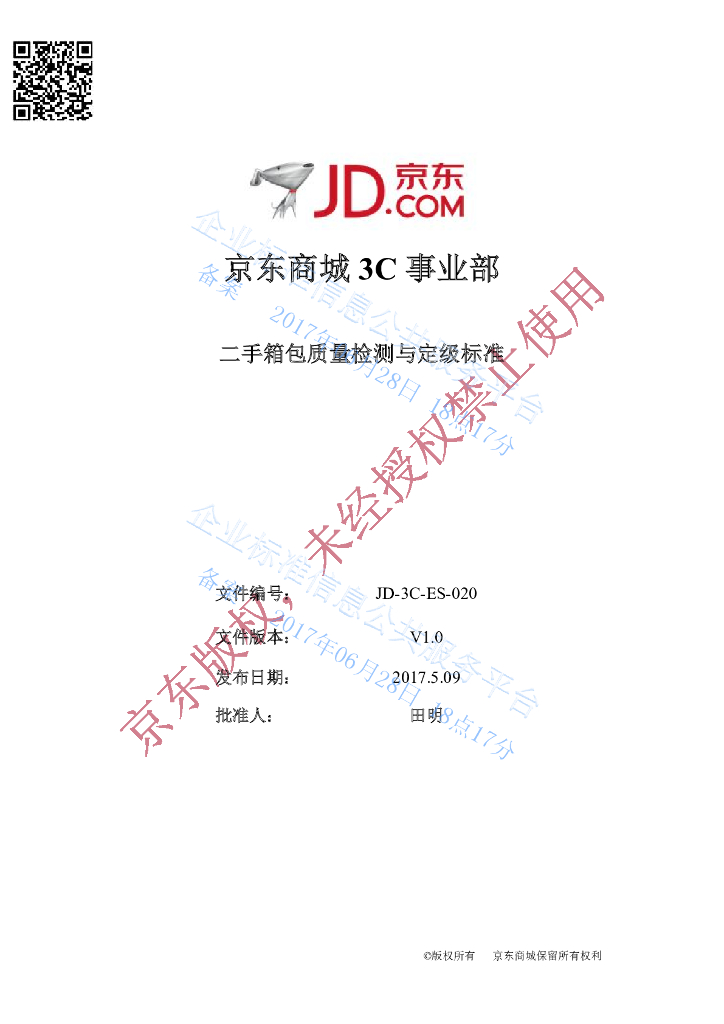 Q/DXJD3CES 020-2017 二手箱包分级检测标准