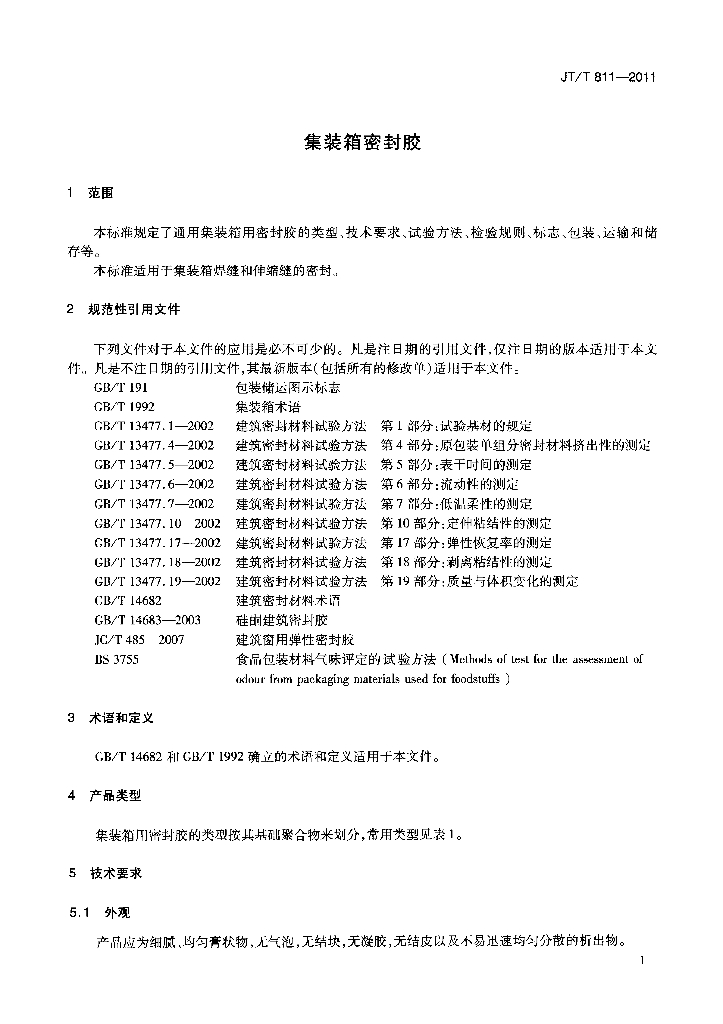 JT/T 811-2011 集装箱密封胶