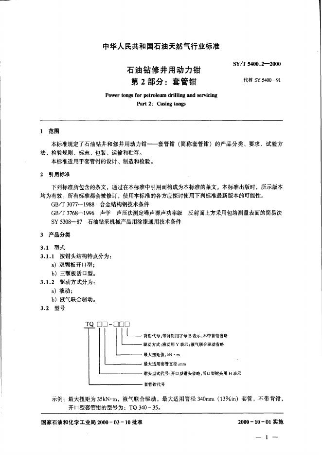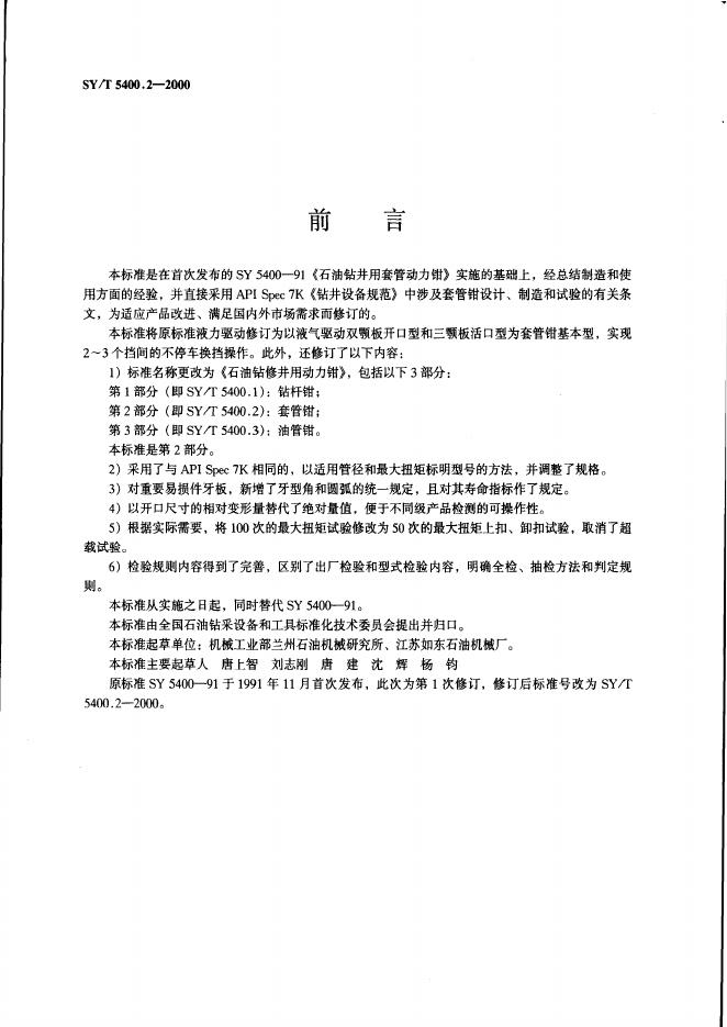 SY 5400-1991 石油钻井用套管动力钳