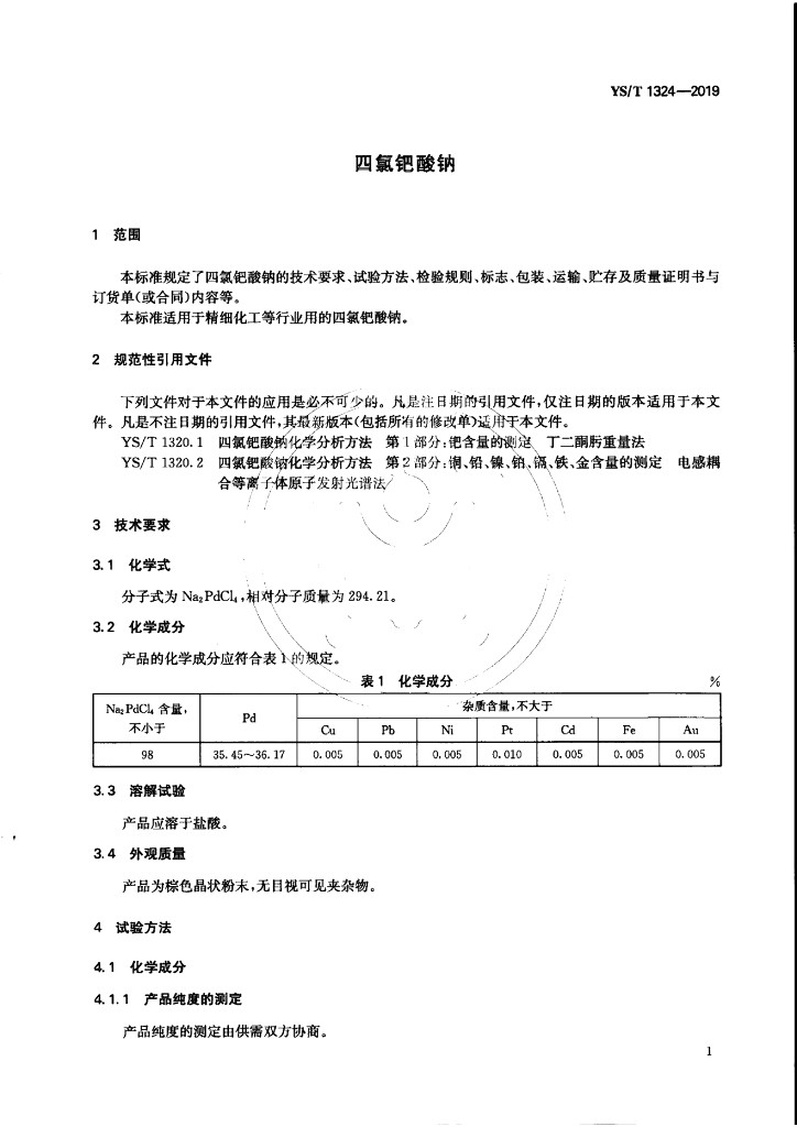 YS/T 1324-2019 四氯钯酸钠
