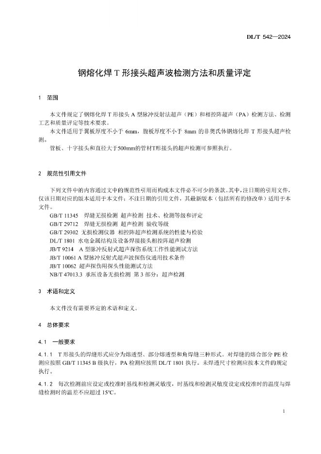 DL/T 542-2024 钢熔化焊T形接头超声波检测方法和质量评定