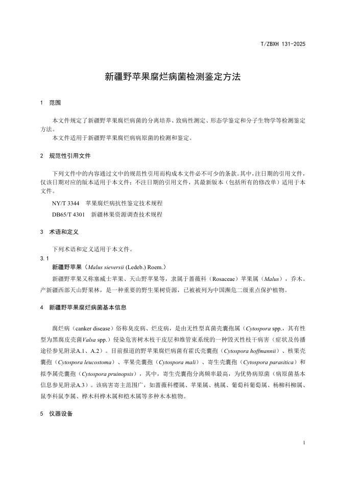 T/ZBXH 131-2025 新疆野苹果腐烂病菌检测鉴定方法