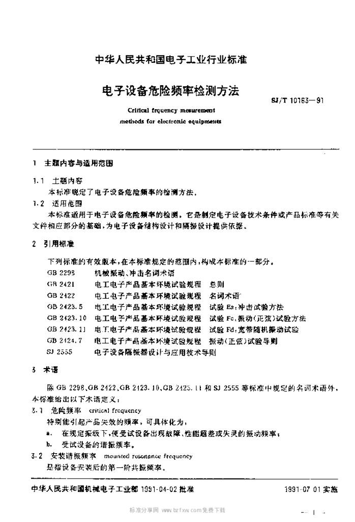 SJ/T 10163-1991 电子设备危险频率检测方法