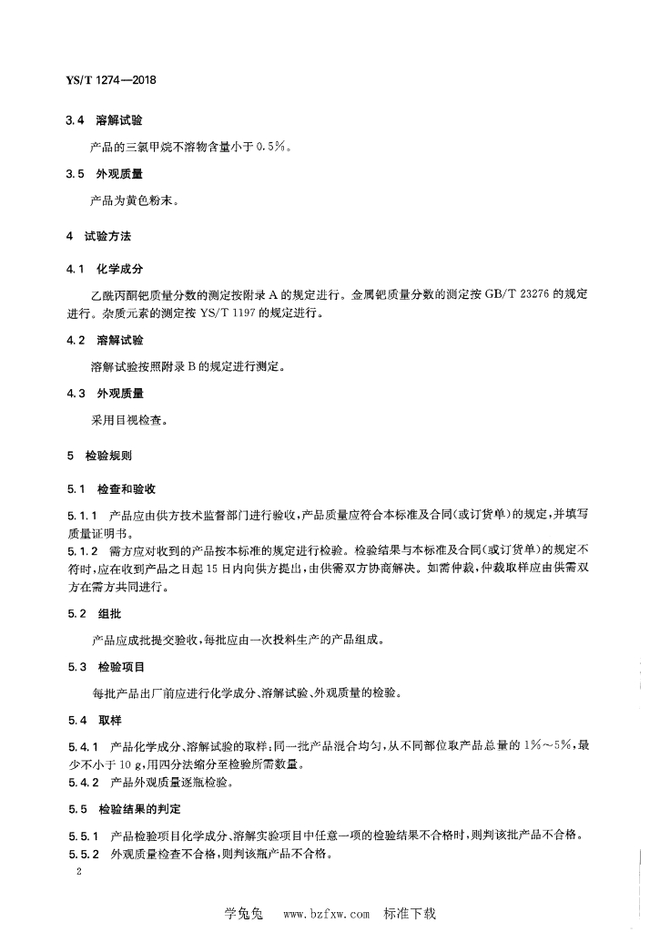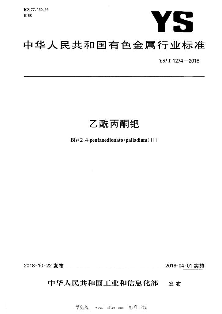 YS/T 1274-2018 乙酰丙酮钯