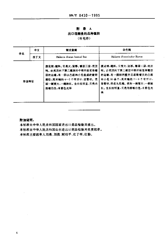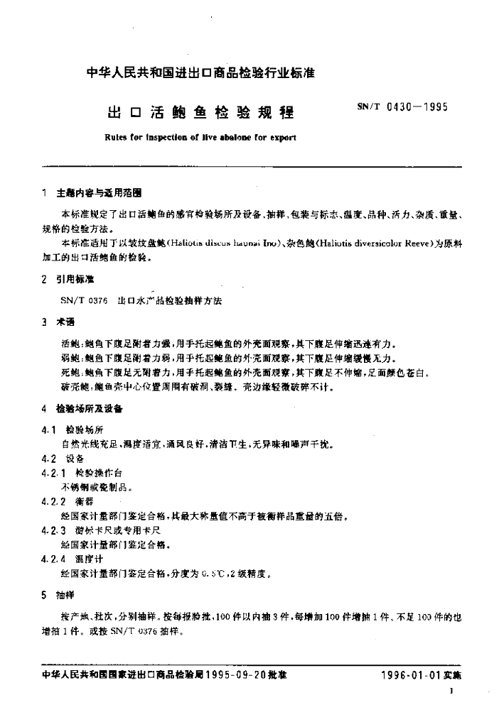 SN/T 0430-1995 出口活鲍鱼检验规程
