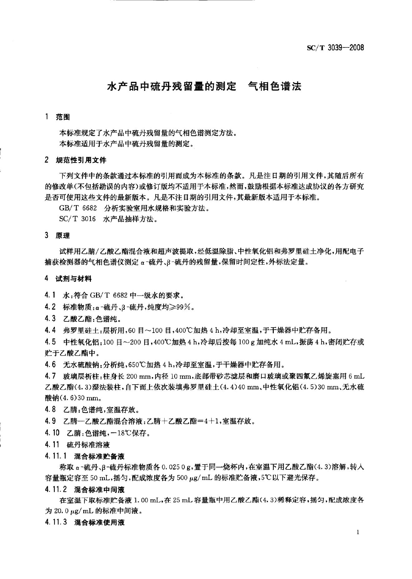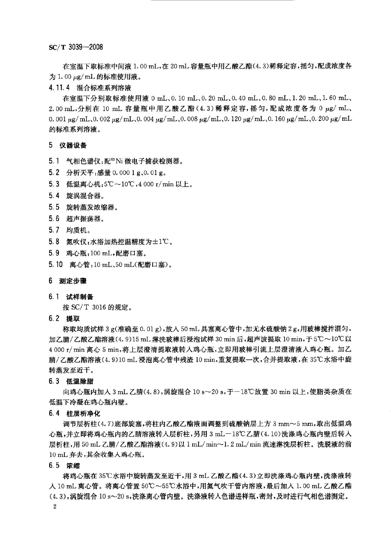 SC/T 3039-2008 水产品中硫丹残留量的测定 气相色谱法
