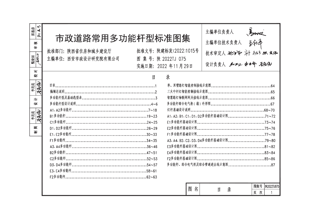 陕2022TJ075 市政道路常用多功能杆型标准图集
