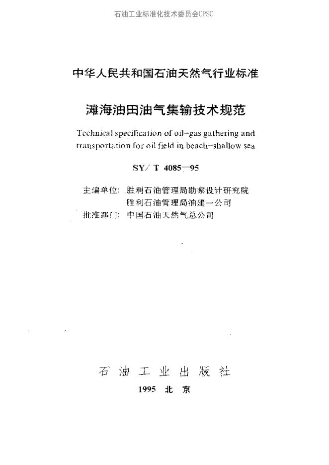 SY/T 4085-1995 滩海油田油气集输技术规范