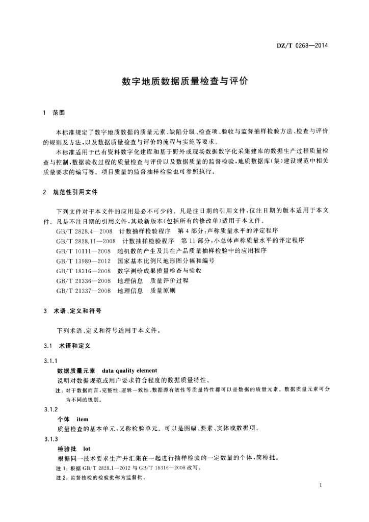 DZ/T 0268-2014 数字地质数据质量检查与评价