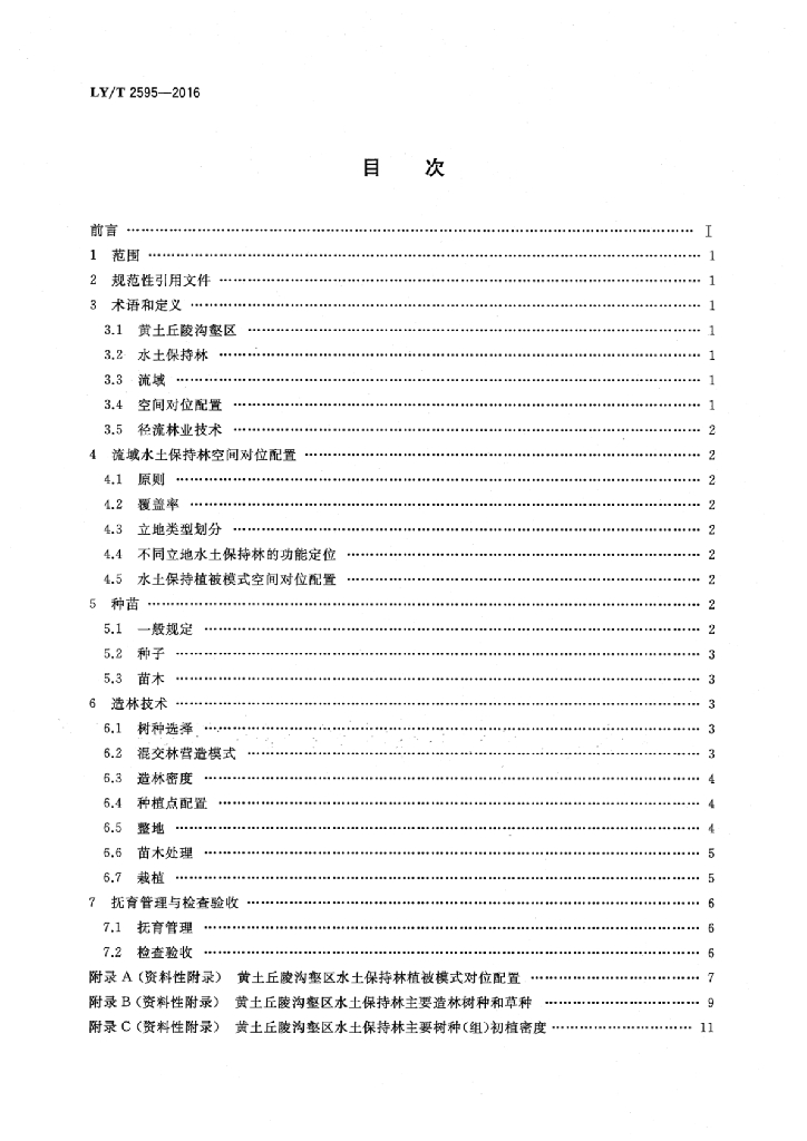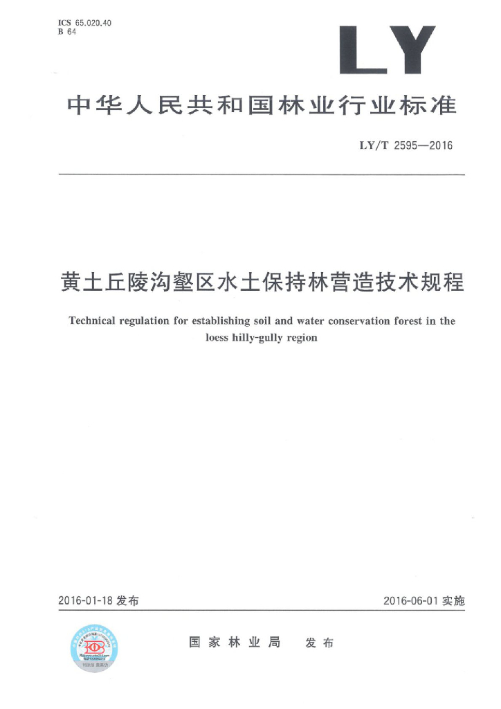 LY/T 2595-2016 黄土丘陵沟壑区水土保持林营造技术规程