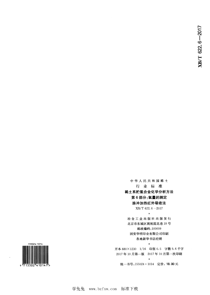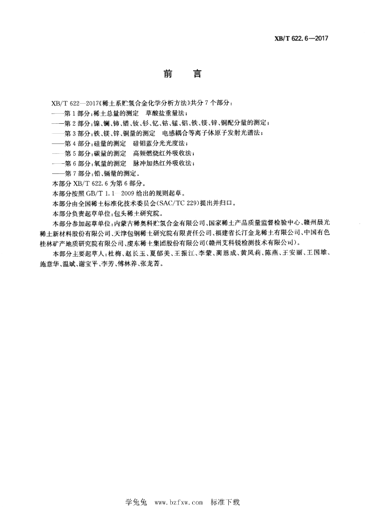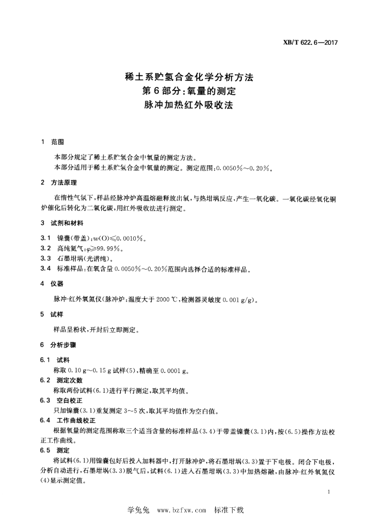 XB/T 622.6-2017 稀土系贮氢合金化学分析方法 第6部分:氧量的测定 脉冲加热红外吸收法