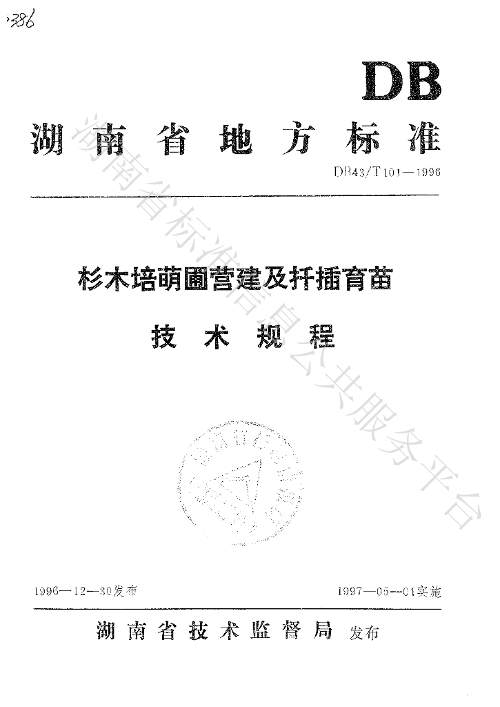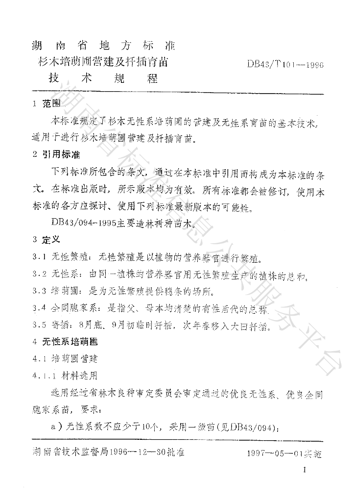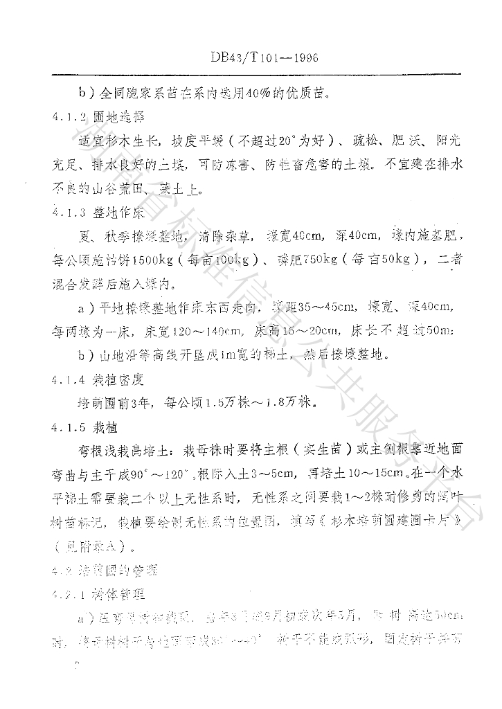 DB43/T 101-1996 杉木培萌圃营建及扦插育苗技术规程