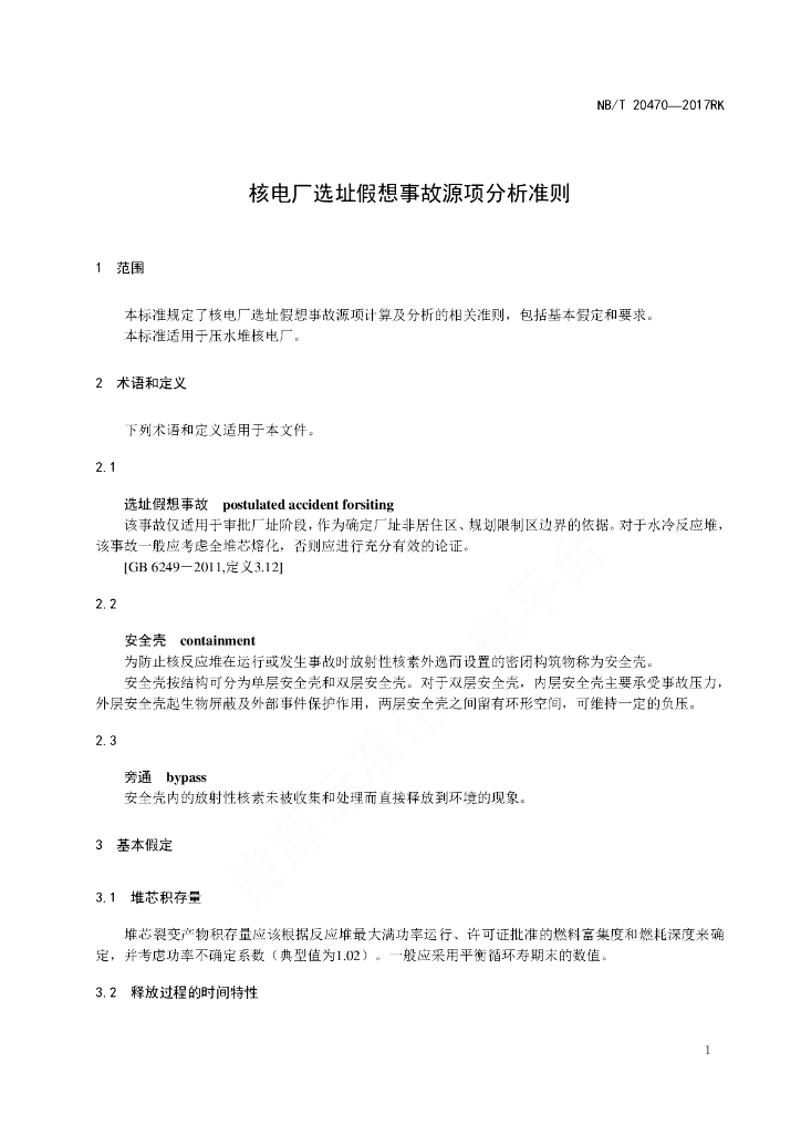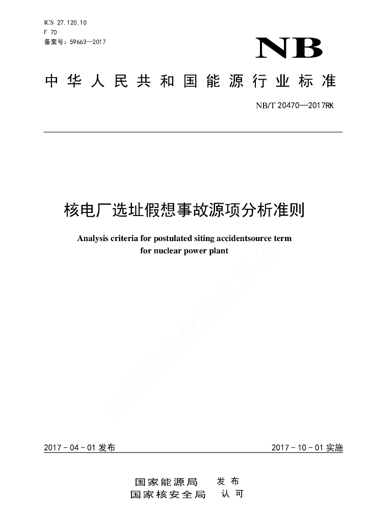 NB/T 20470-2017RK 核电厂选址假想事故源项分析准则