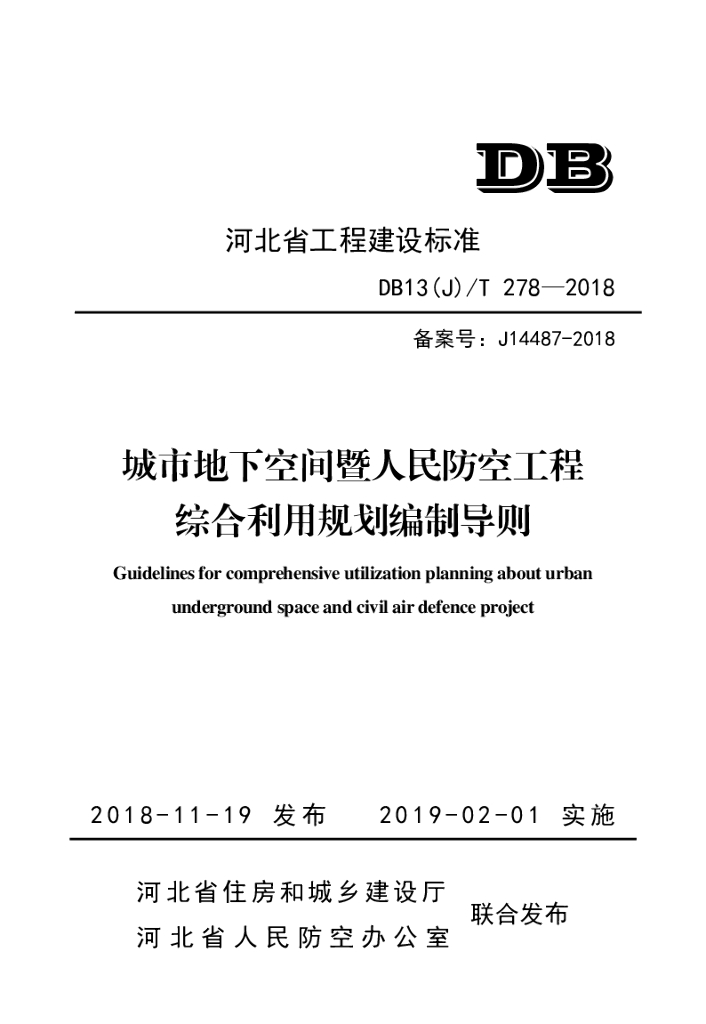 DB13(J)/T 278-2018 城市地下空间暨人民防空工程综合利用规划编制导则