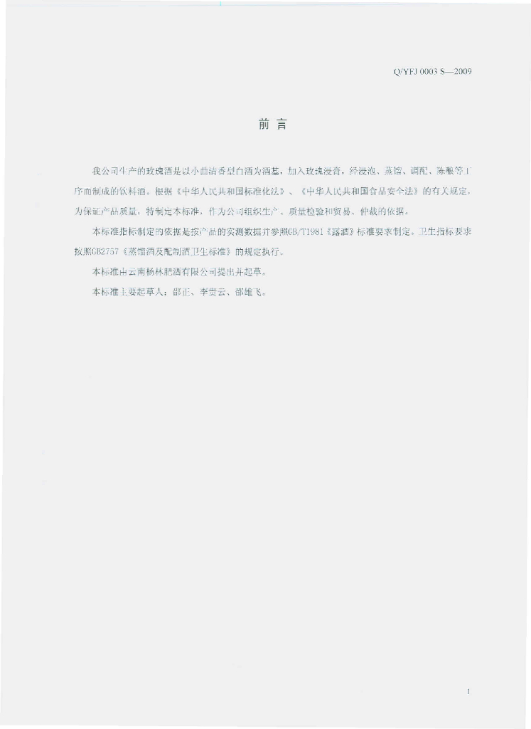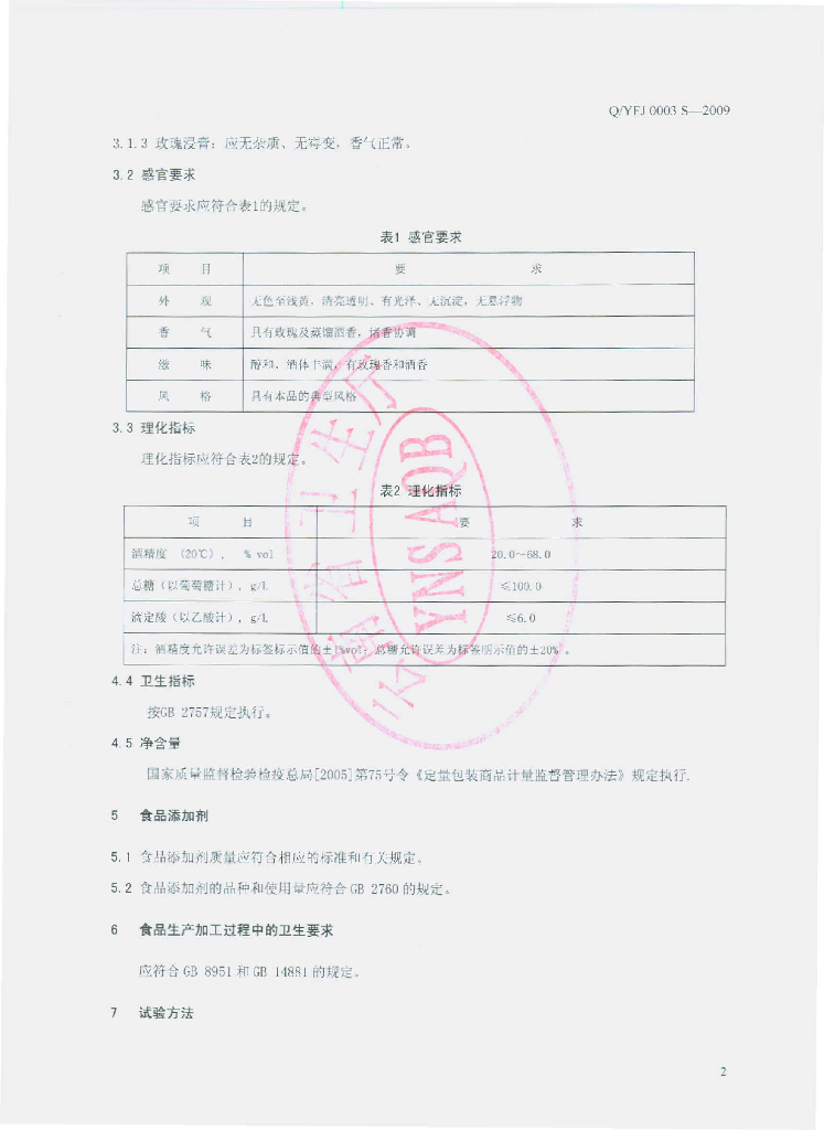 Q/YFJ 0003S-2009 玫瑰酒