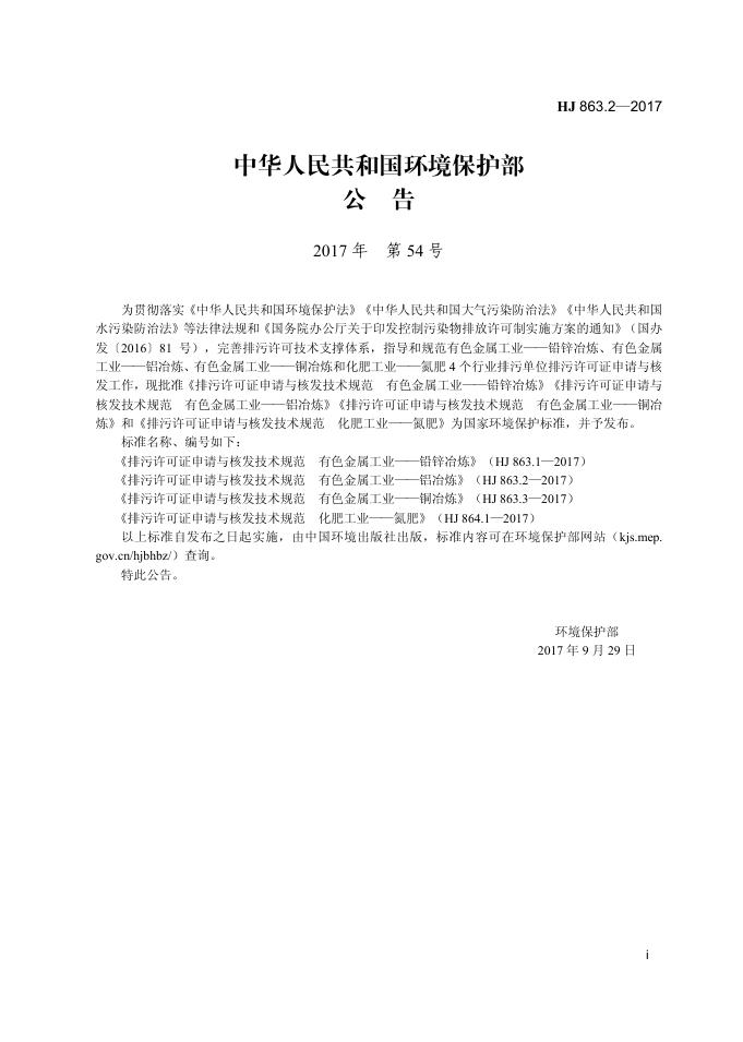 HJ 863.2-2017 排污许可证申请与核发技术规范 有色金属工业-铝冶炼