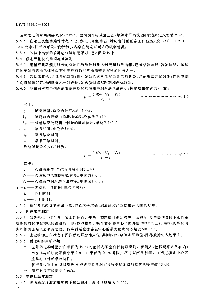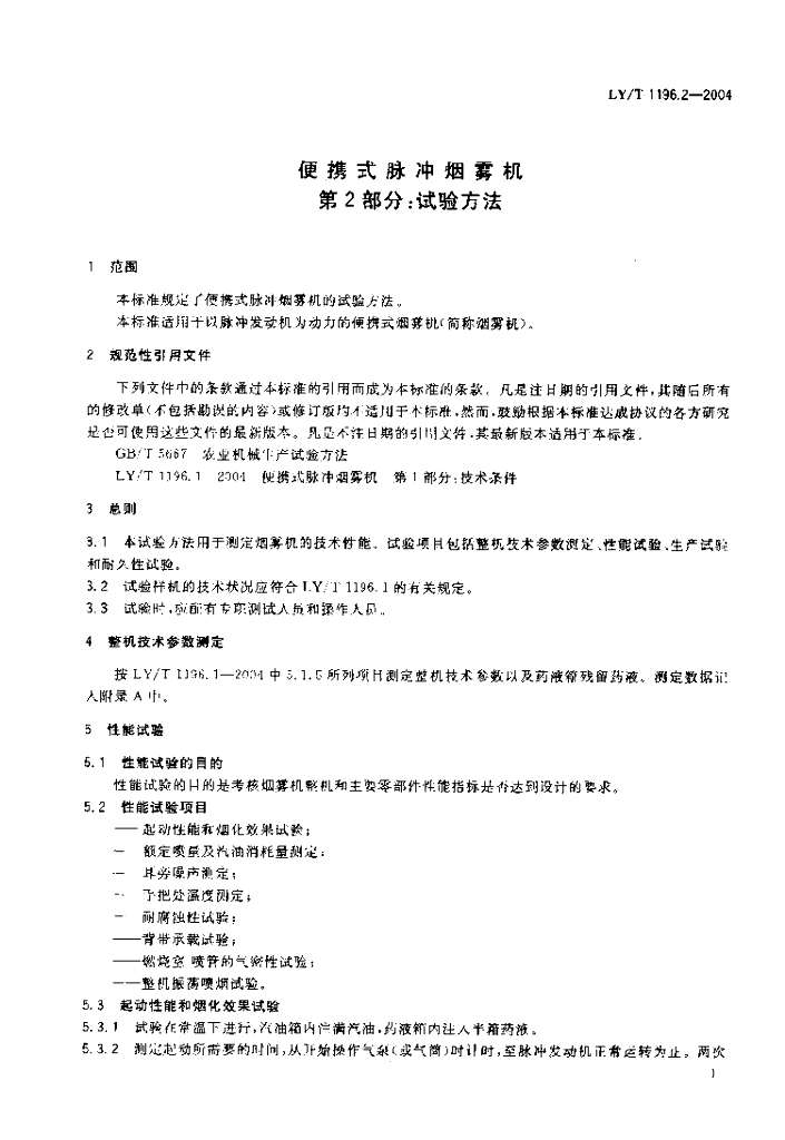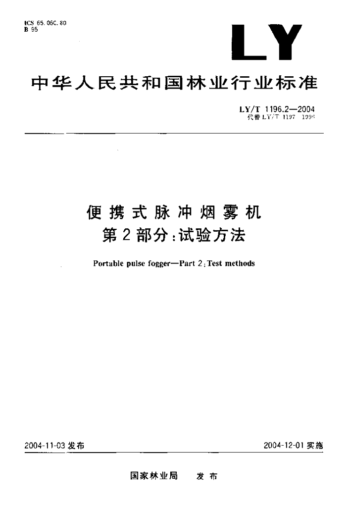 LY/T 1196.2-2004 便携式脉冲烟雾机 第2部分:试验方法