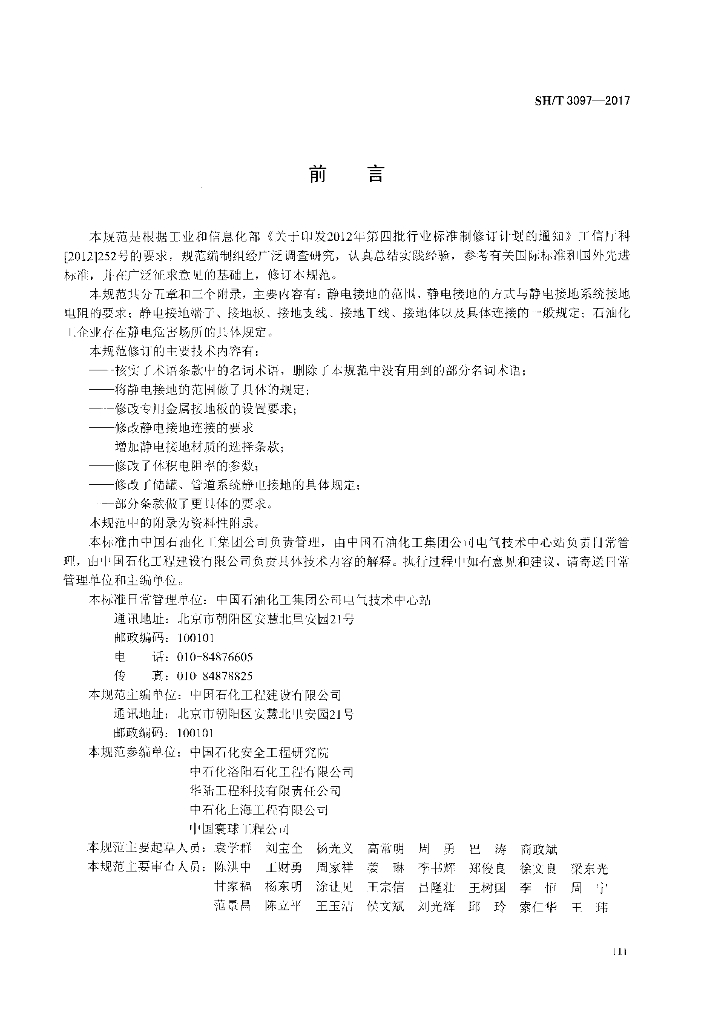 SH/T 3097-2017 石油化工静电接地设计规范