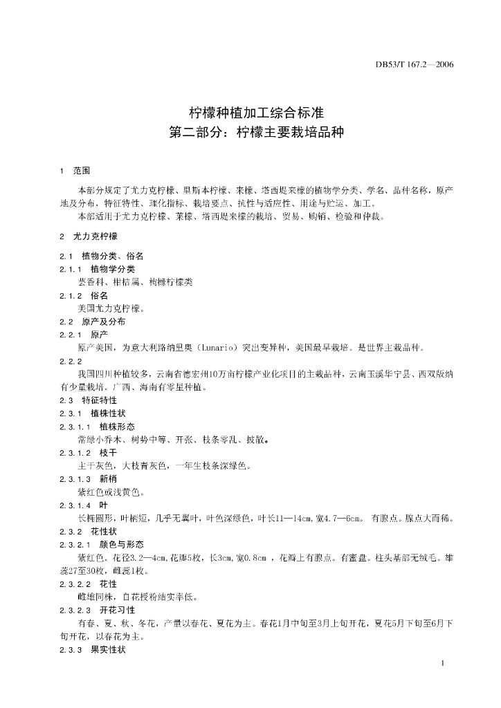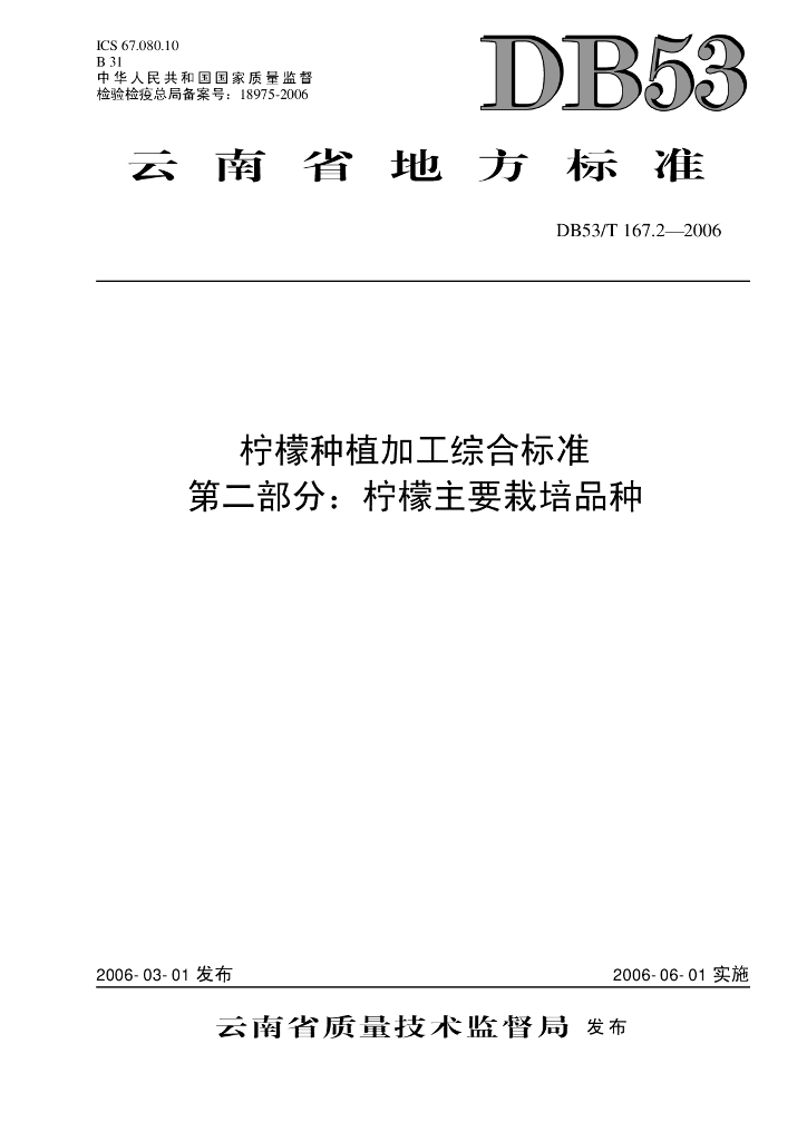 DB53/T 167.2-2006 柠檬种植加工综合标准 第二部分:柠檬主要栽培品种
