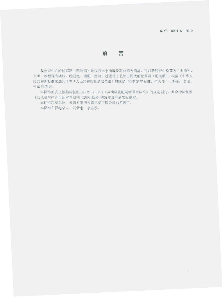 Q/YBL 0001S-2010 松萁酒(配制酒)