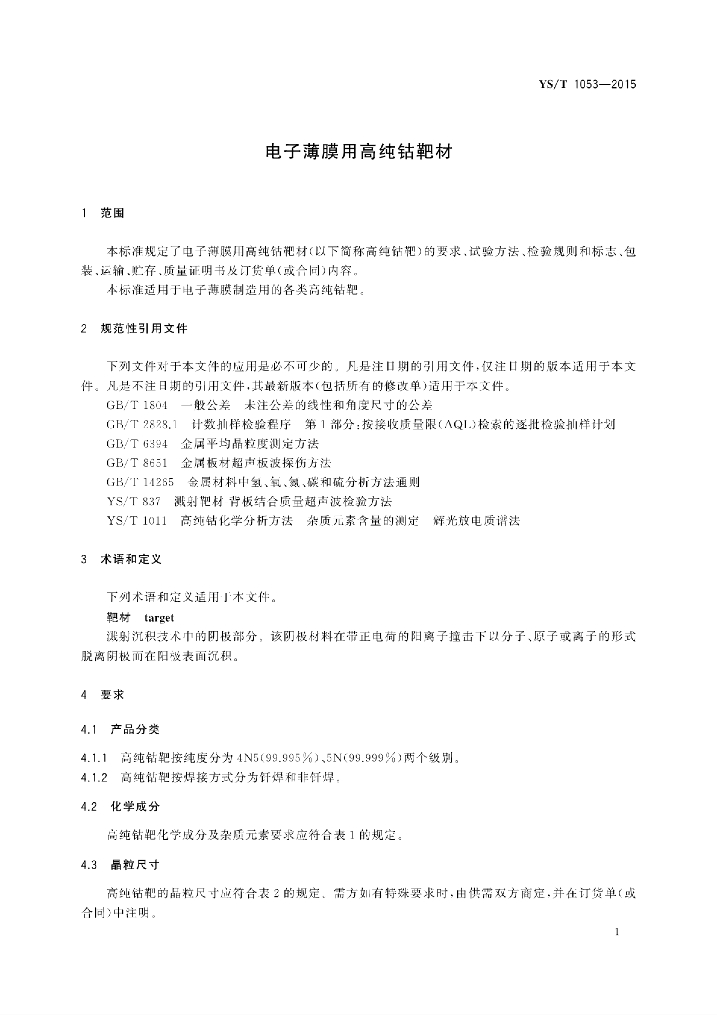 YS/T 1053-2015 电子薄膜用高纯钴靶材