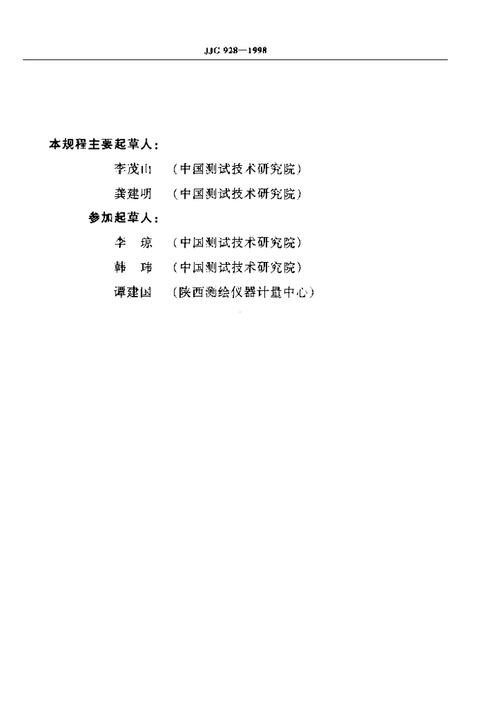 李茂山(中国测试技术研究院)、龚建明(中国测试技术研究院)、李琼(中国测试技术研究院)、韩玮(中国测试技术研究院)、谭建国(陕西测绘仪器计量中心)