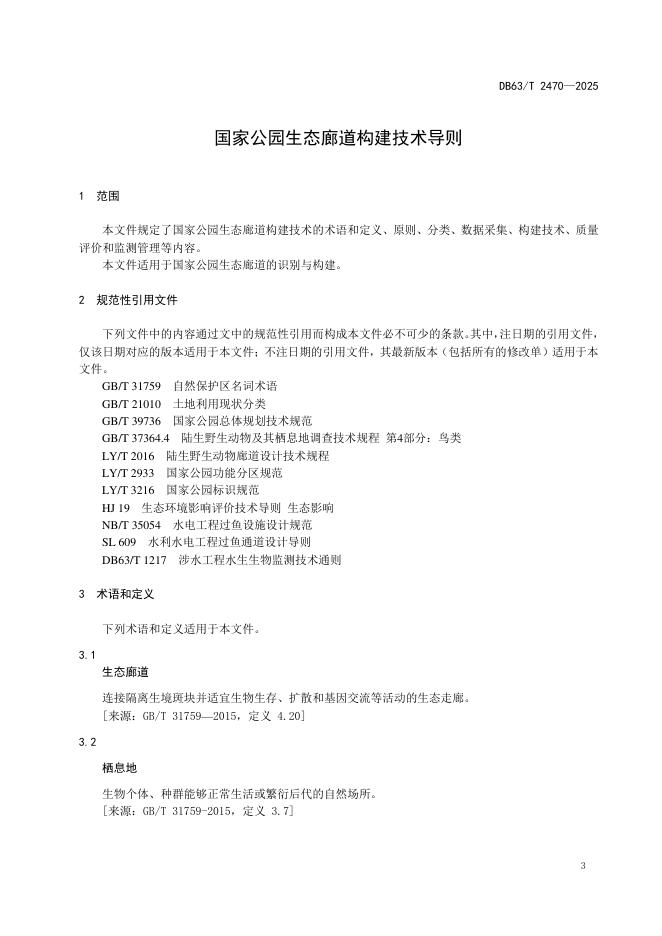 DB63/T 2470-2025 国家公园生态廊道构建技术导则