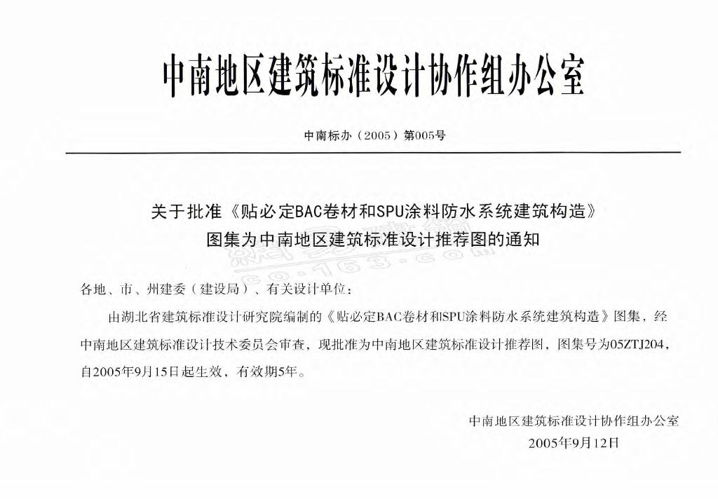 05ZTJ204 贴必定BAC卷材和SPU涂料防水系统建筑构造图集(中南标)