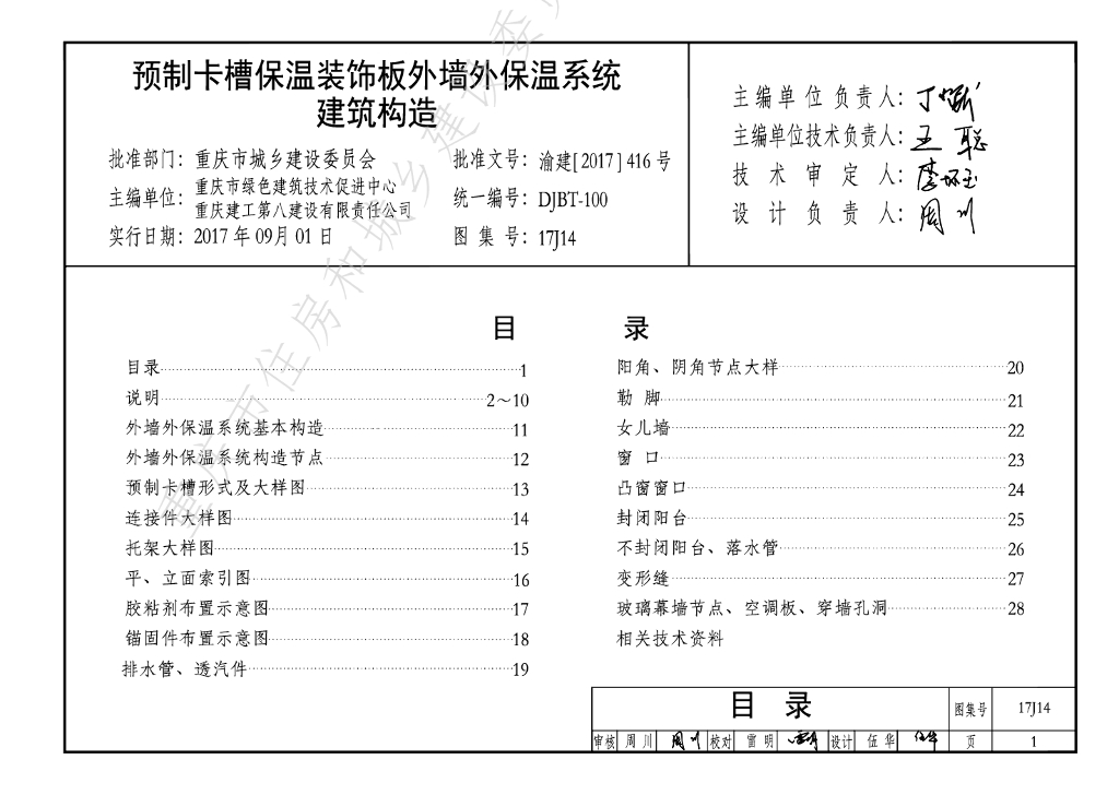 17J14 预制卡槽保温装饰板外墙外保温系统建筑构造图集(DJBT-100)