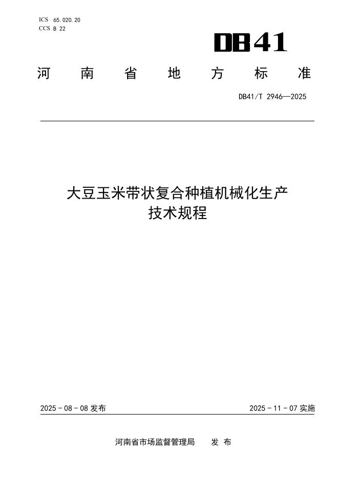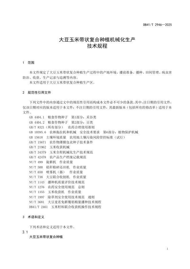DB41/T 2946-2025 大豆玉米带状复合种植机械化生产技术规程