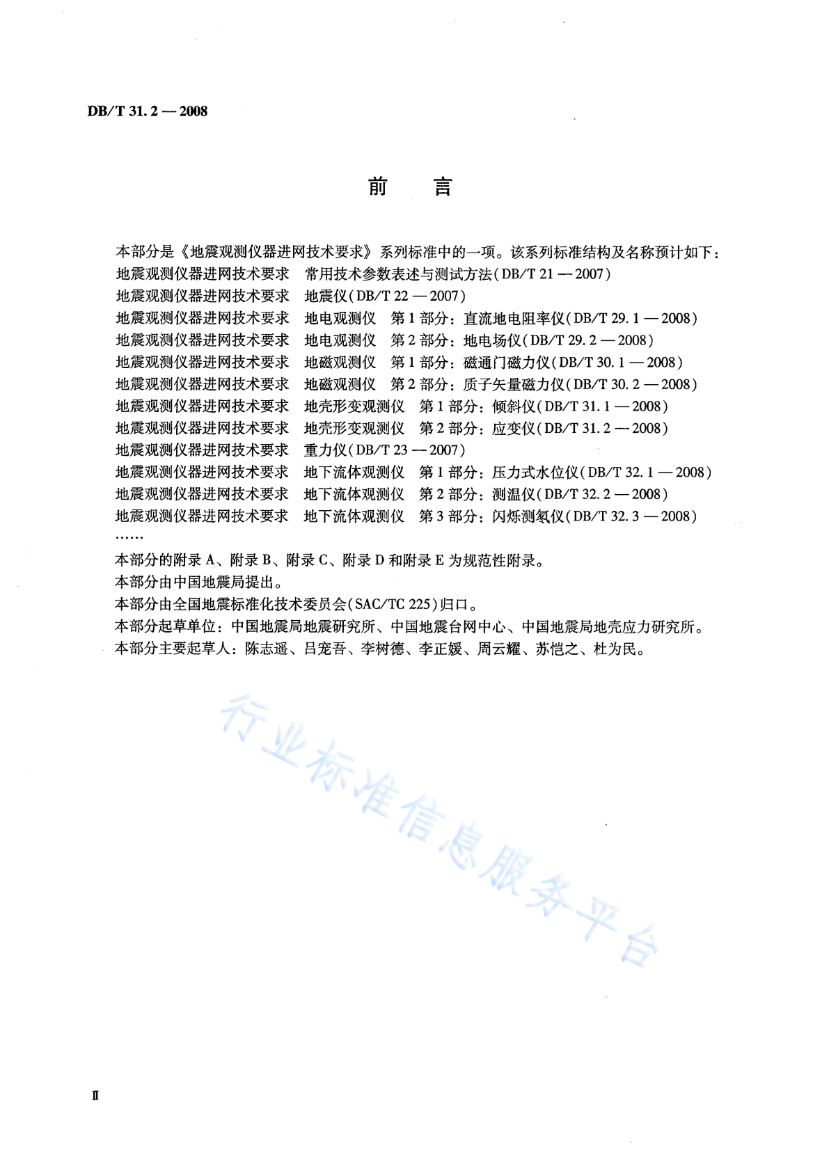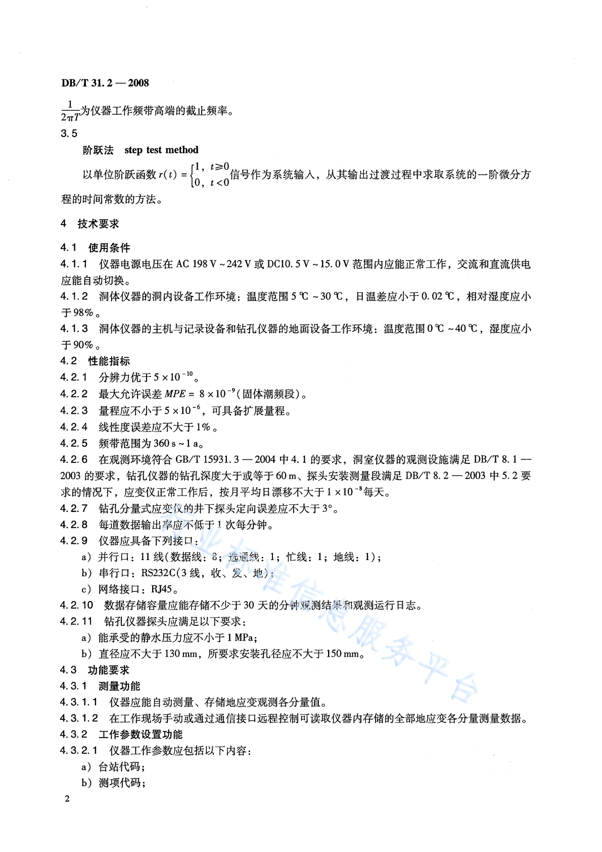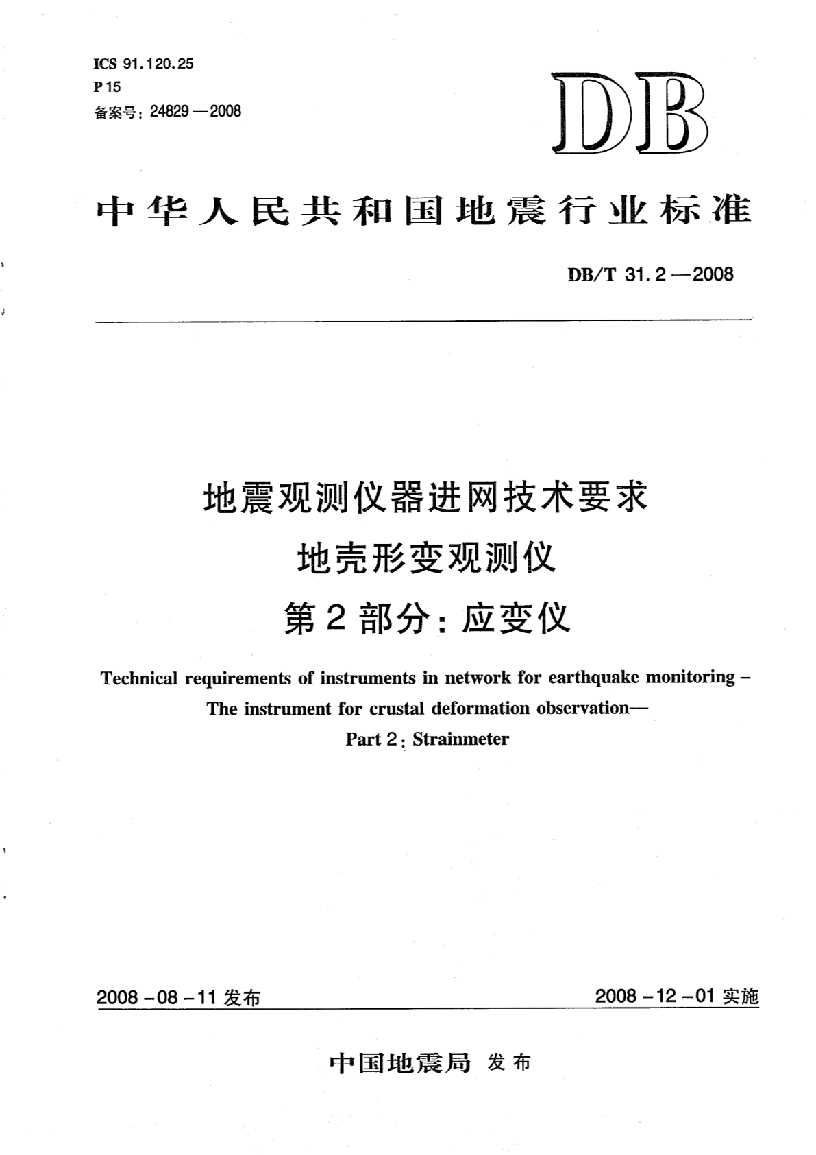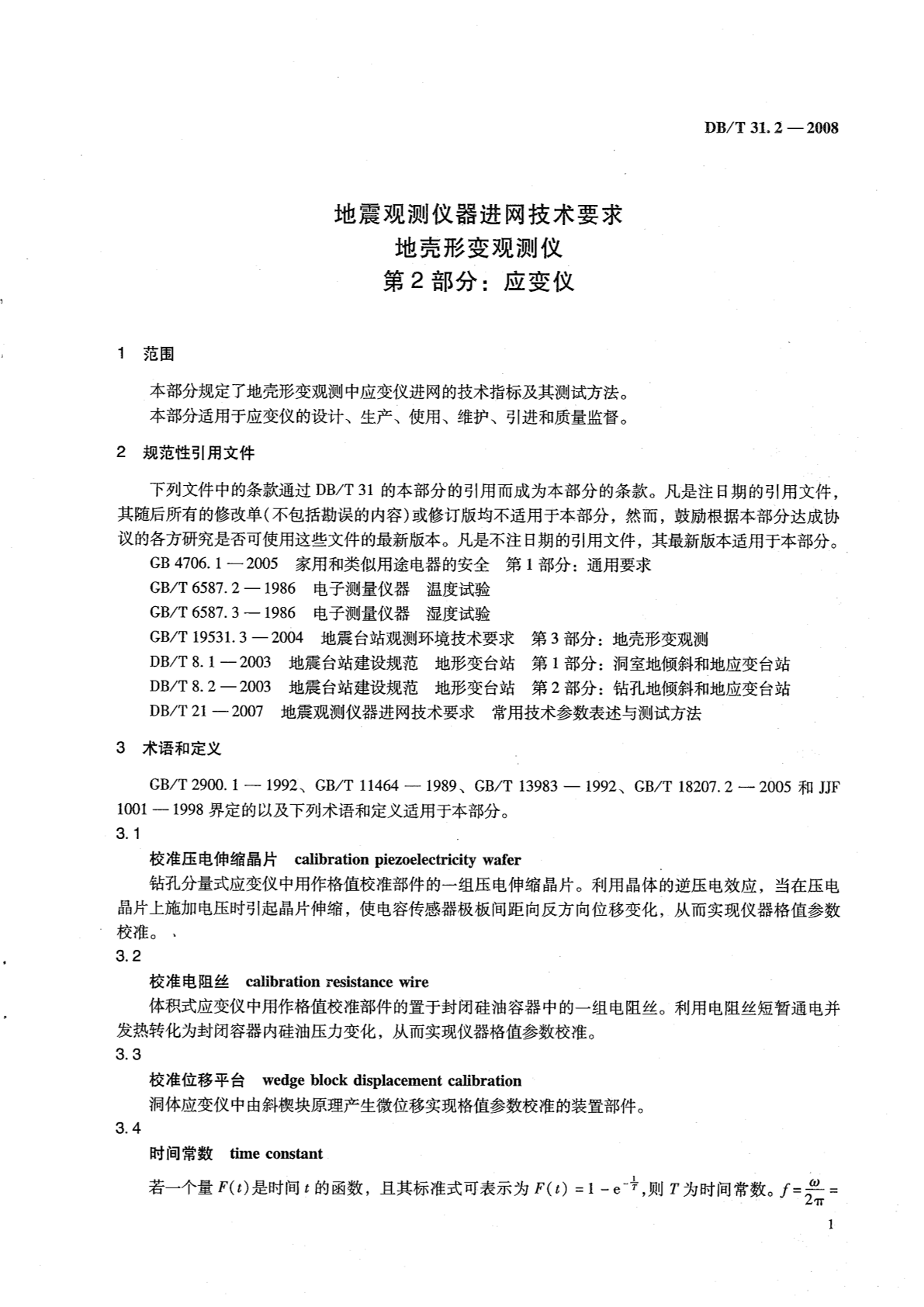 DB/T 31.2-2008 地震观测仪器进网技术要求 地壳形变观测仪 第2部分:应变仪