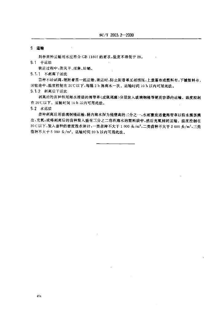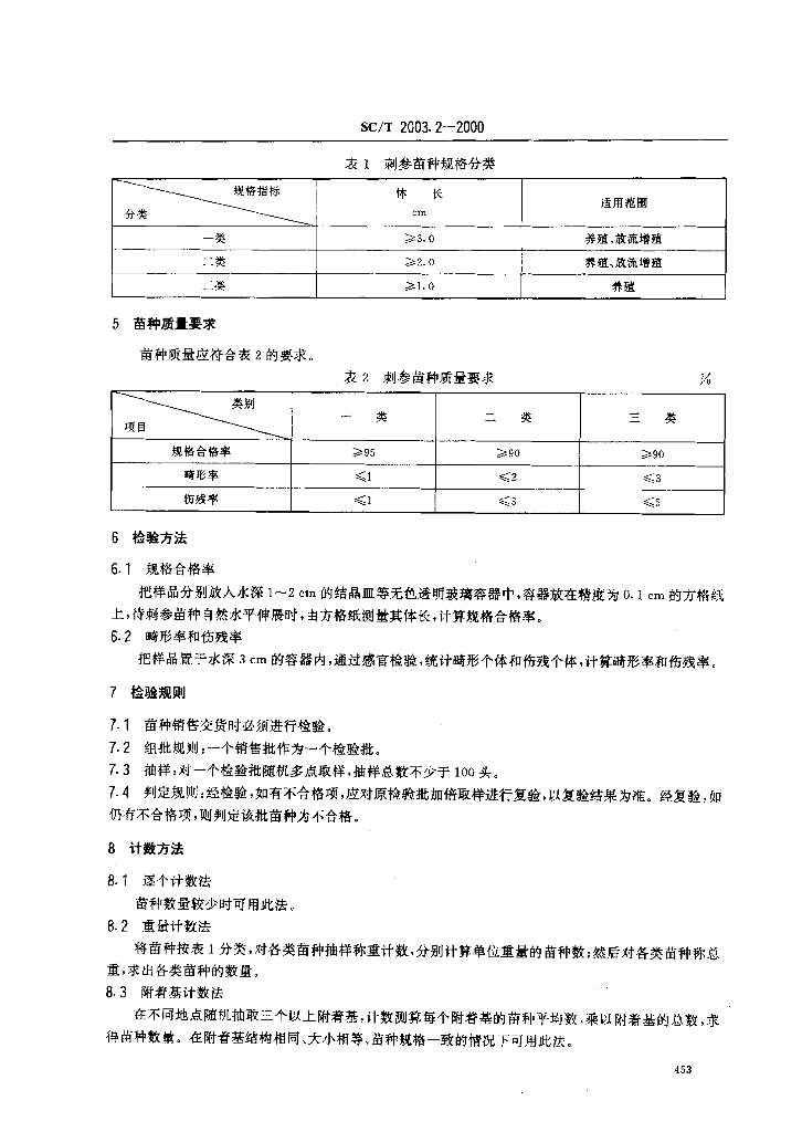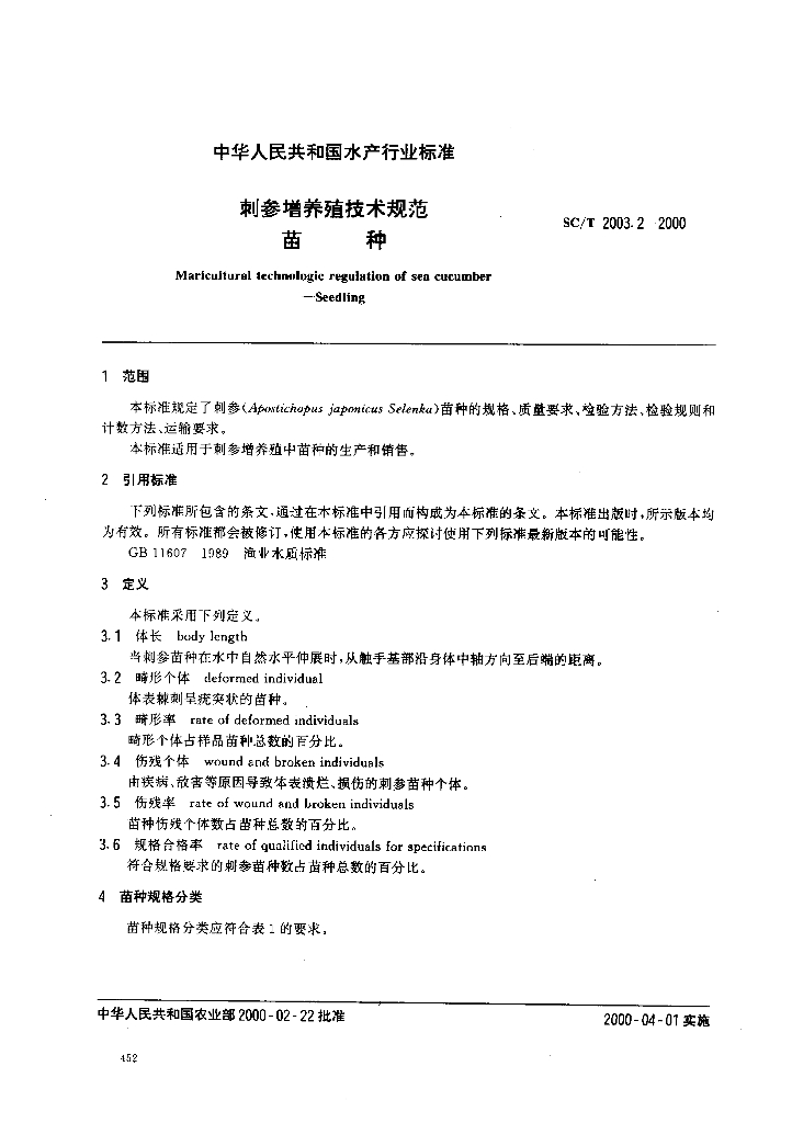 SC/T 2003.2-2000 刺参增养殖技术规范 苗种