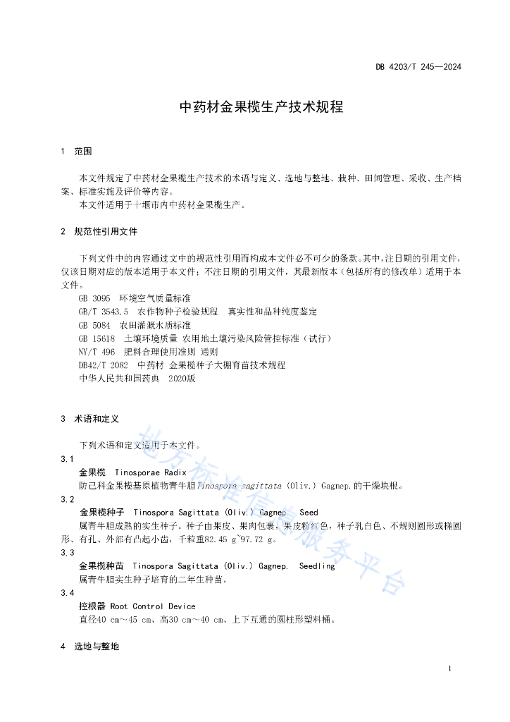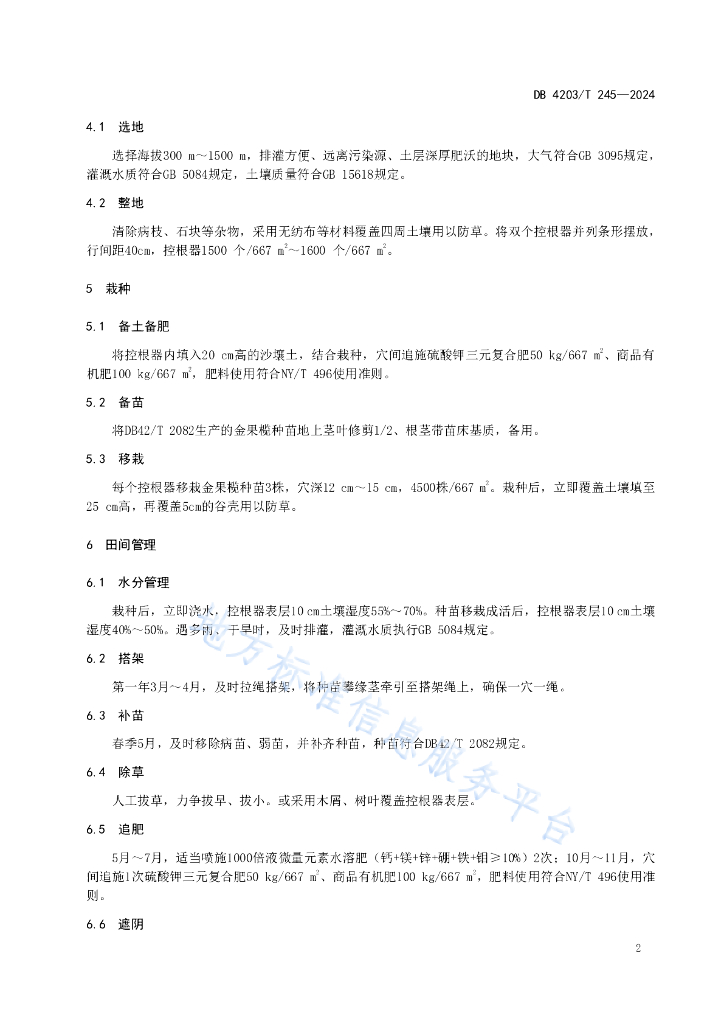 DB4203/T 245-2024 中药材金果榄生产技术规程