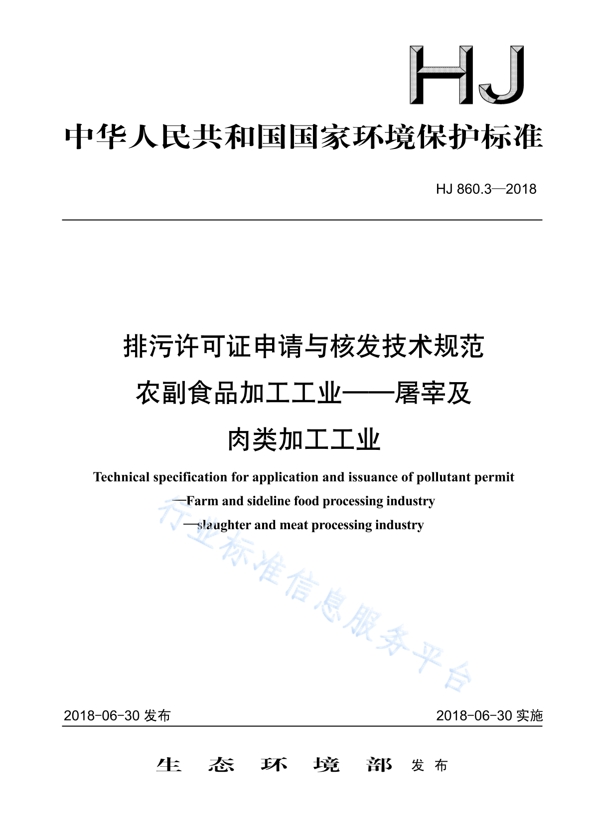 HJ 860.3-2018 排污许可证申请与核发技术规范 农副食品加工工业—屠宰及肉类加工工业