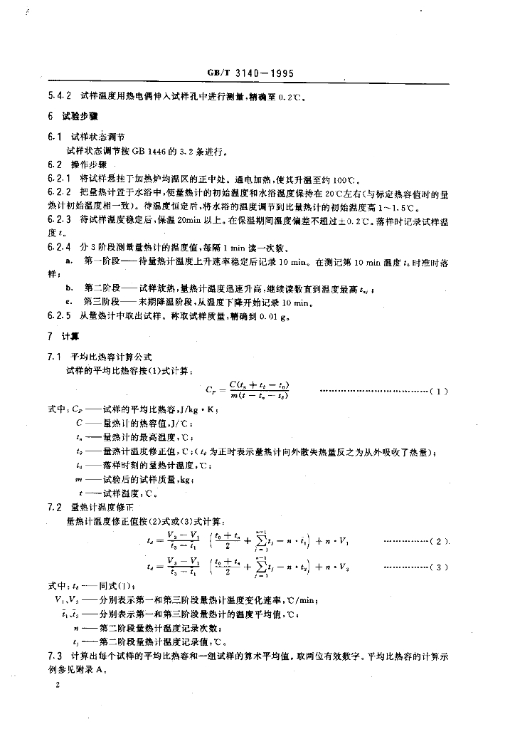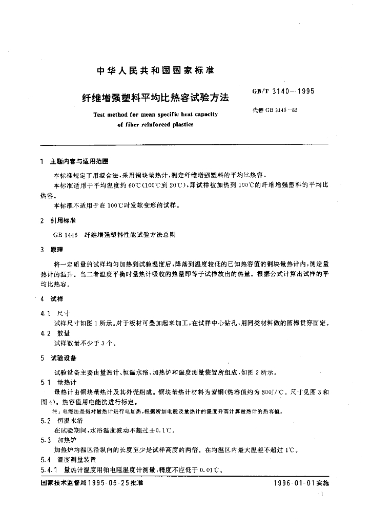 GB/T 3140-1995 纤维增强塑料平均比热容试验方法