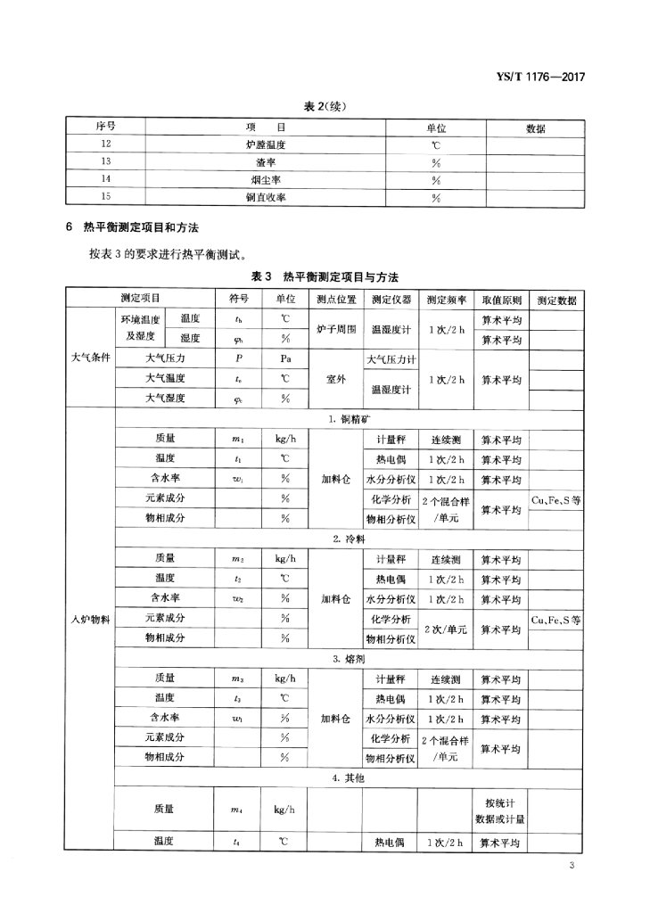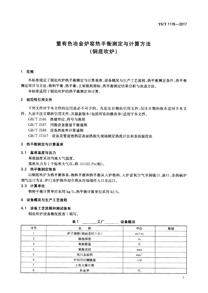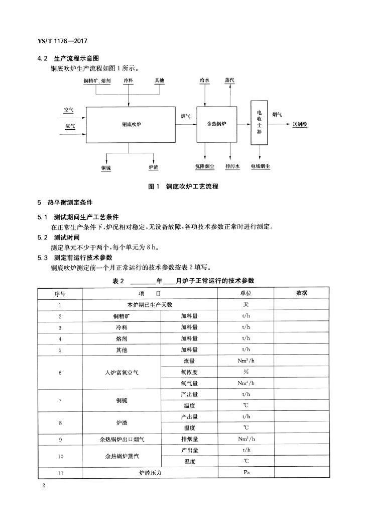YS/T 1176-2017 重有色冶金炉窑热平衡测定与计算方法(铜底吹炉)