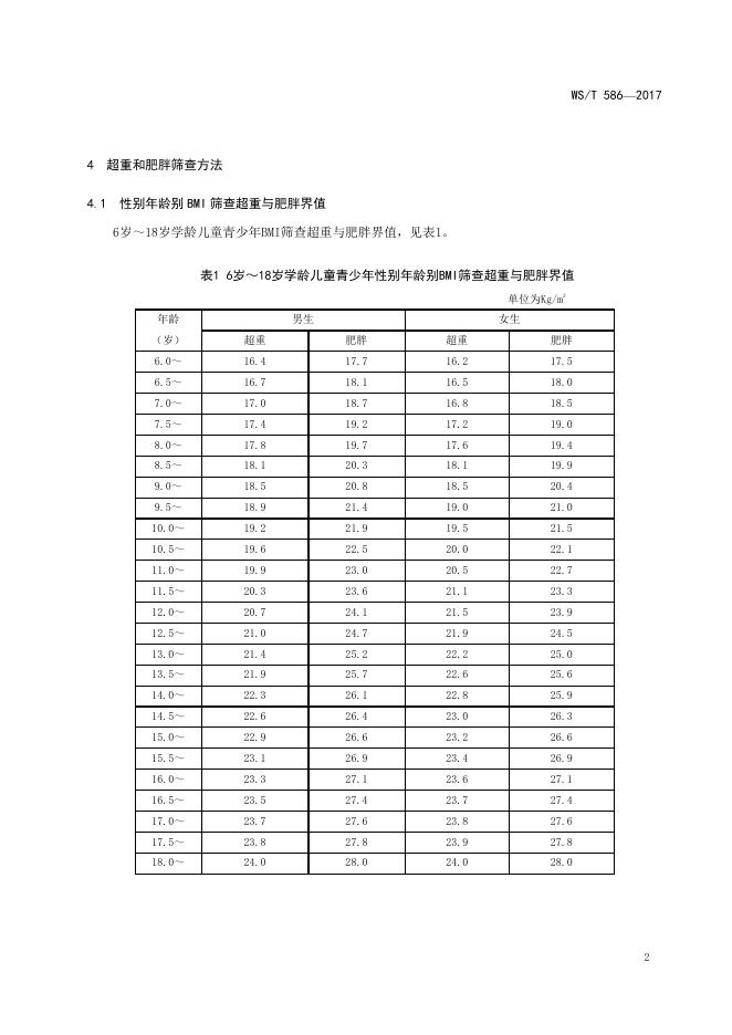 WS/T 586-2018 学龄儿童青少年超重与肥胖筛查