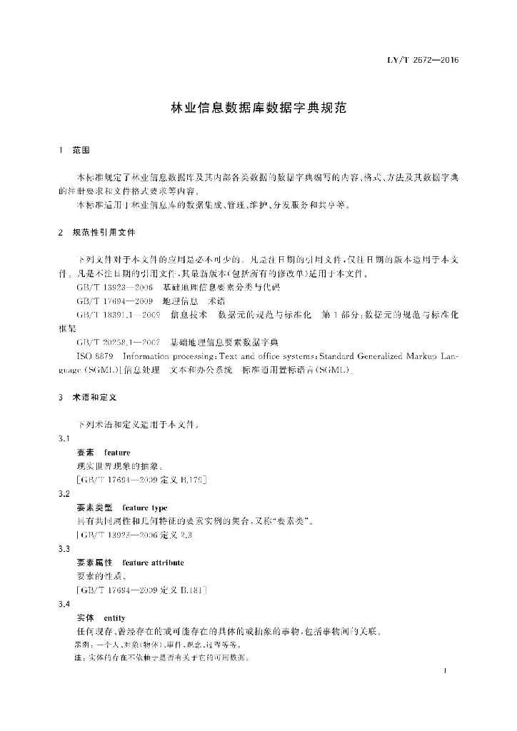 LY/T 2672-2016 林业信息数据库数据字典规范