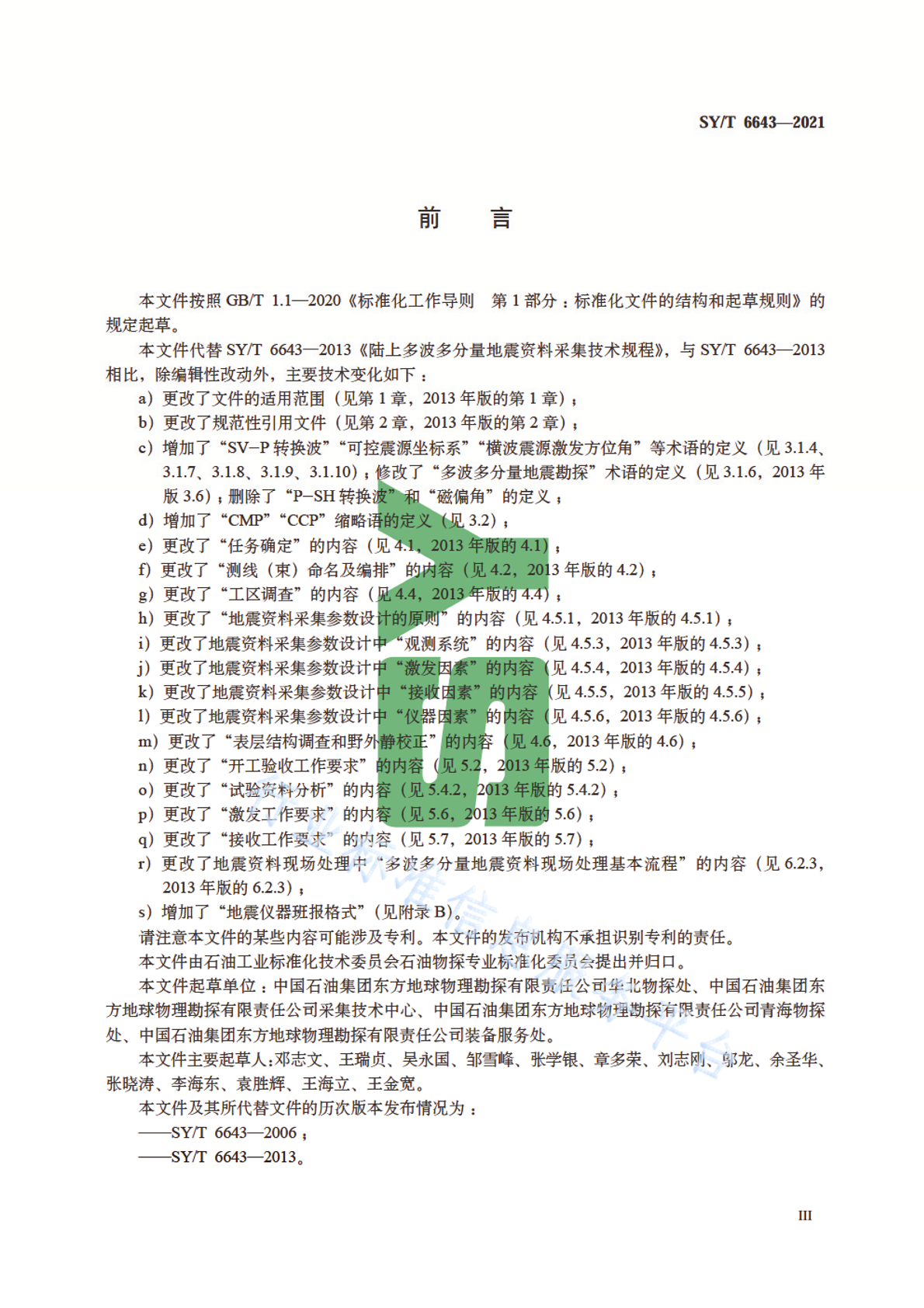 - 提出单位:石油工业标准化技术委员会石油物探专业标准化委员会