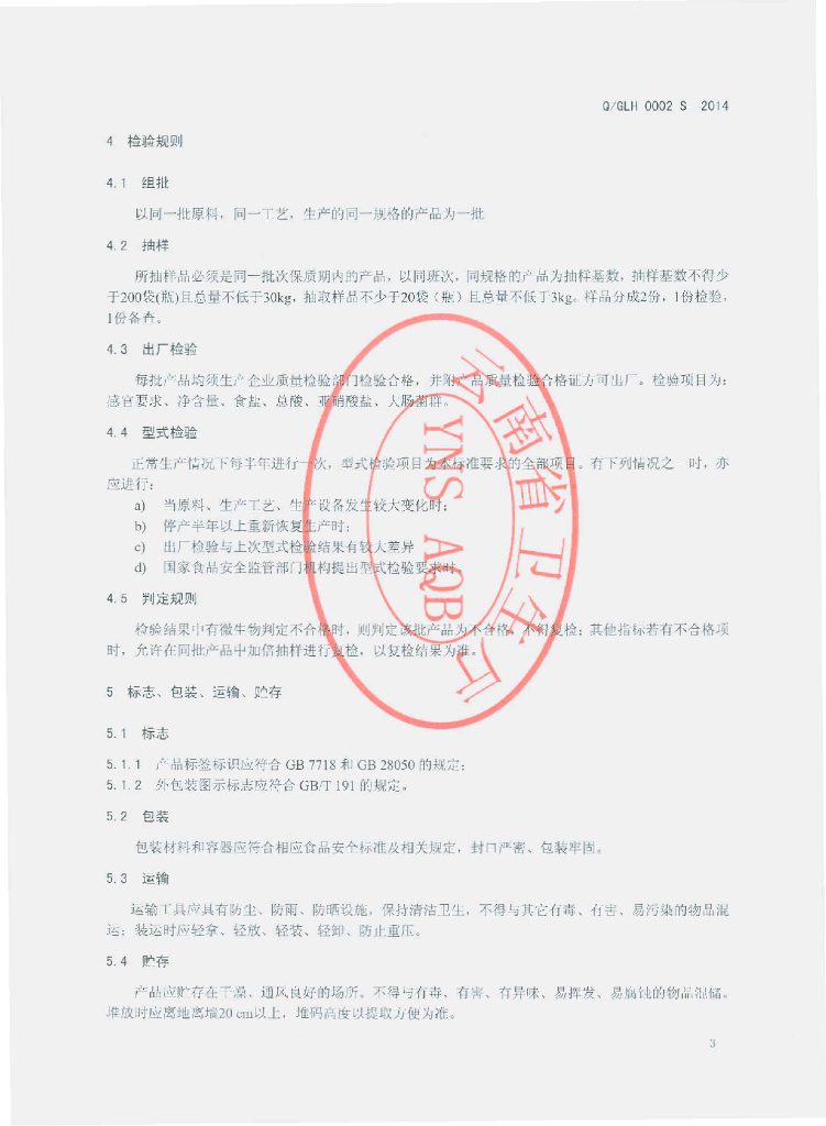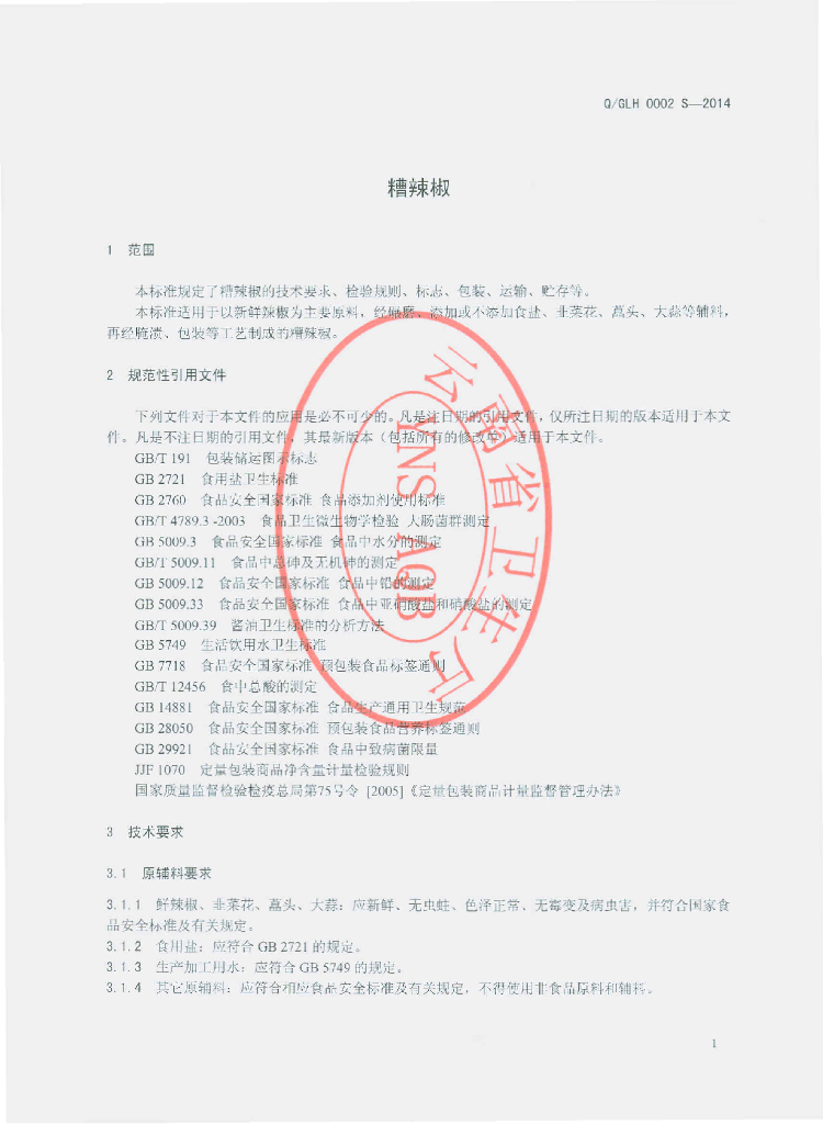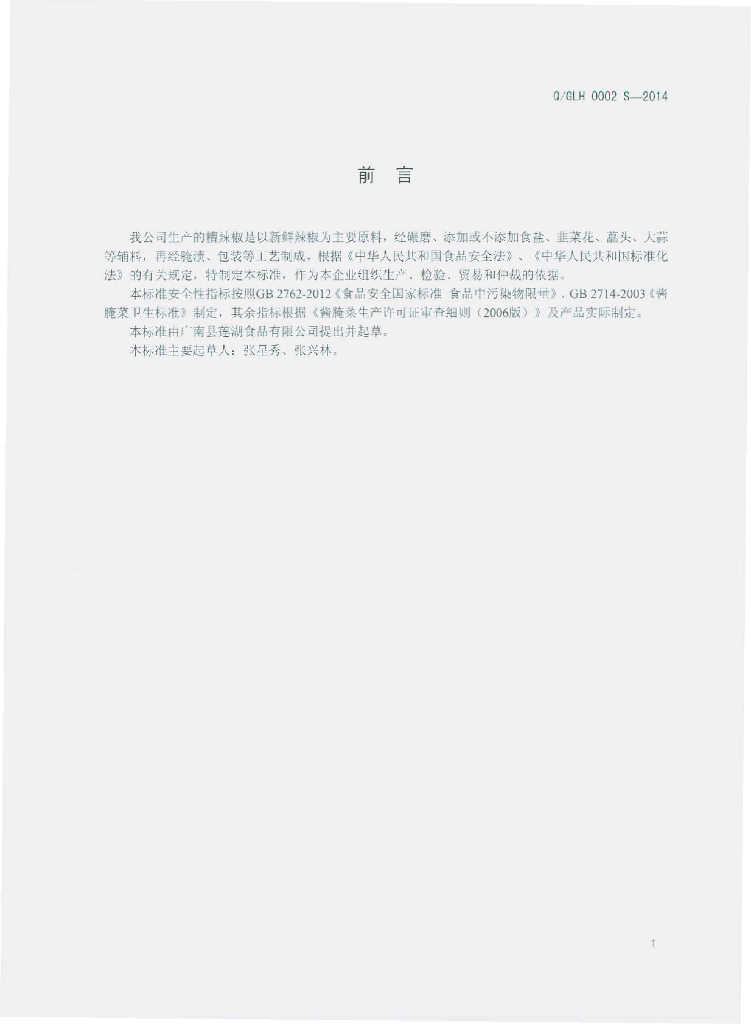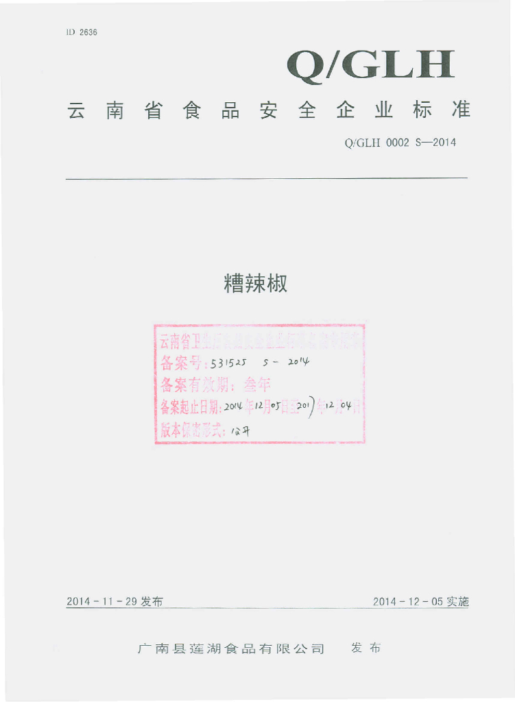 Q/GLH 0002S-2014 广南县莲湖食品有限公司 糟辣椒