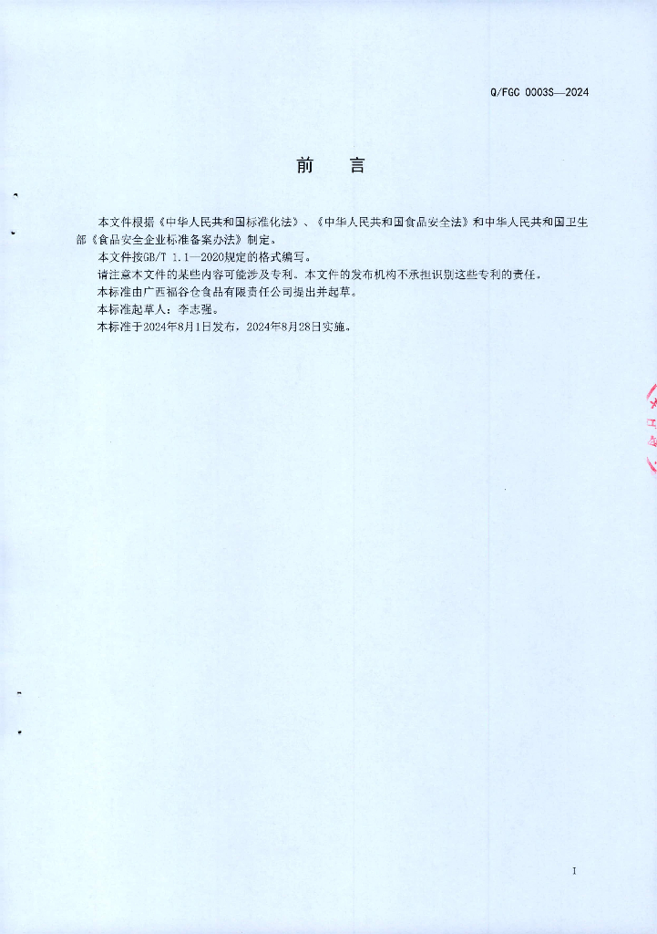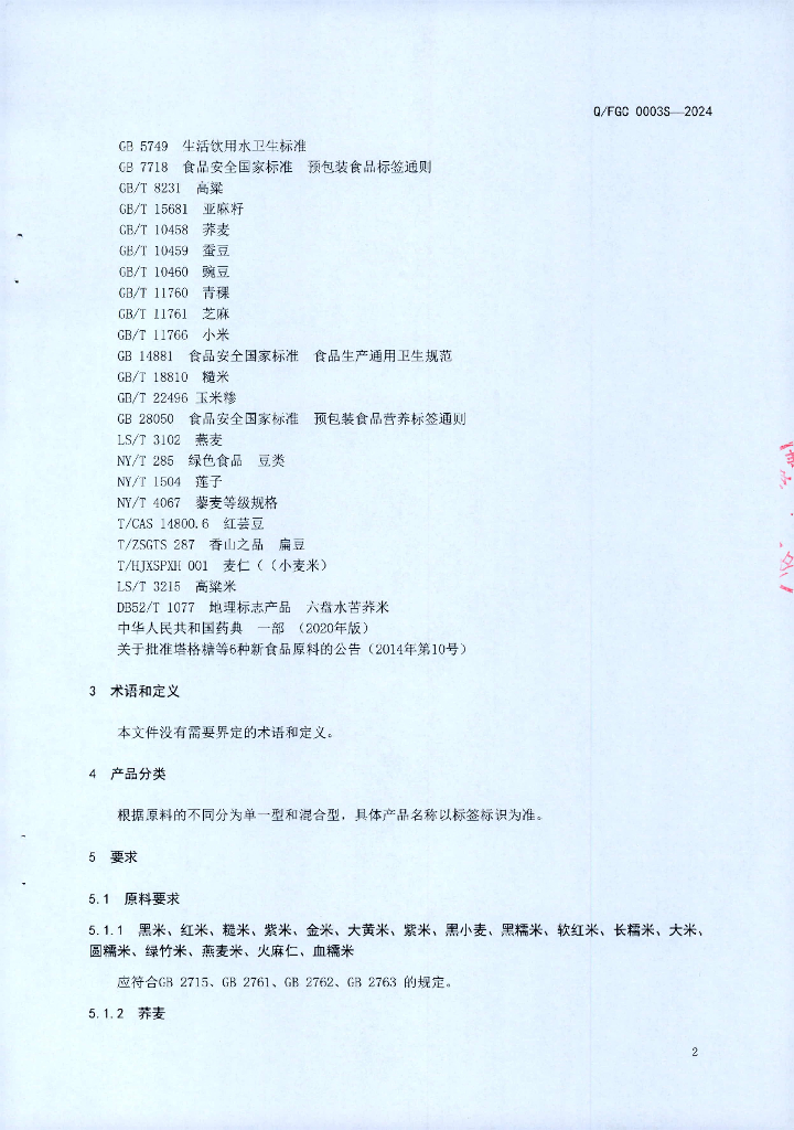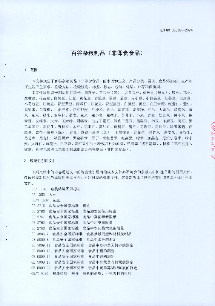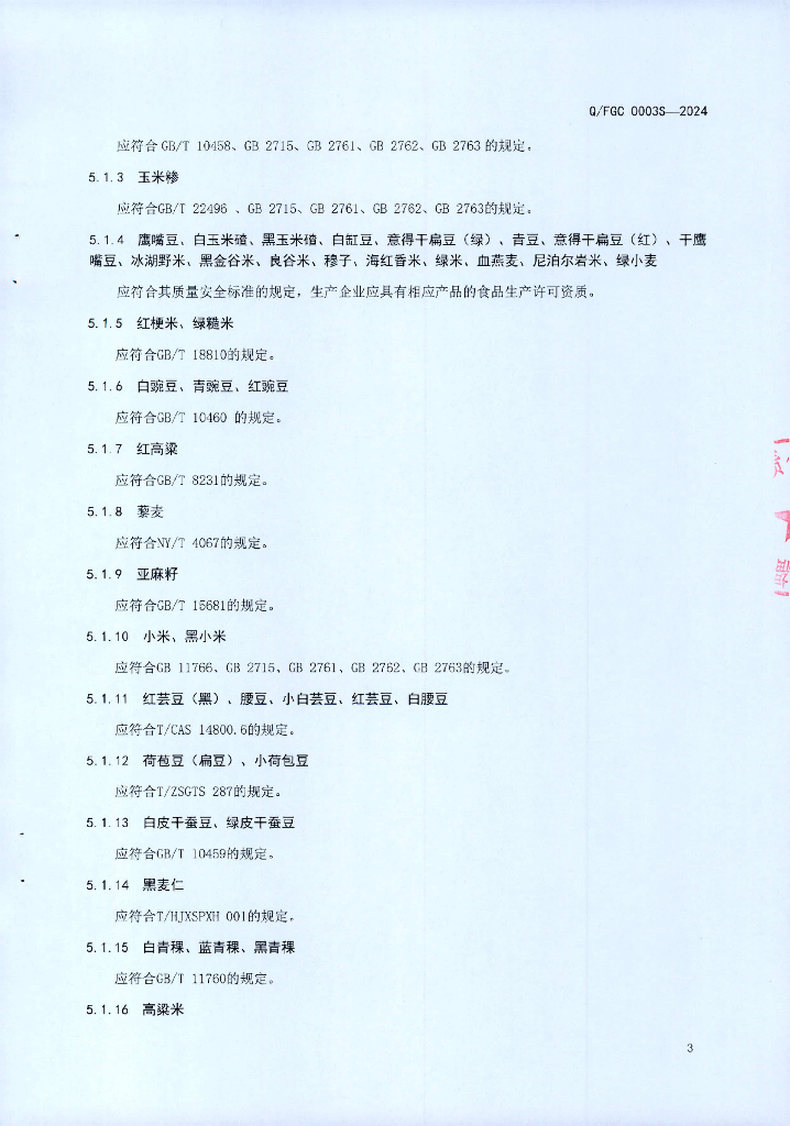 Q/FGC 0003S-2024 百谷杂粮制品(非即食食品)