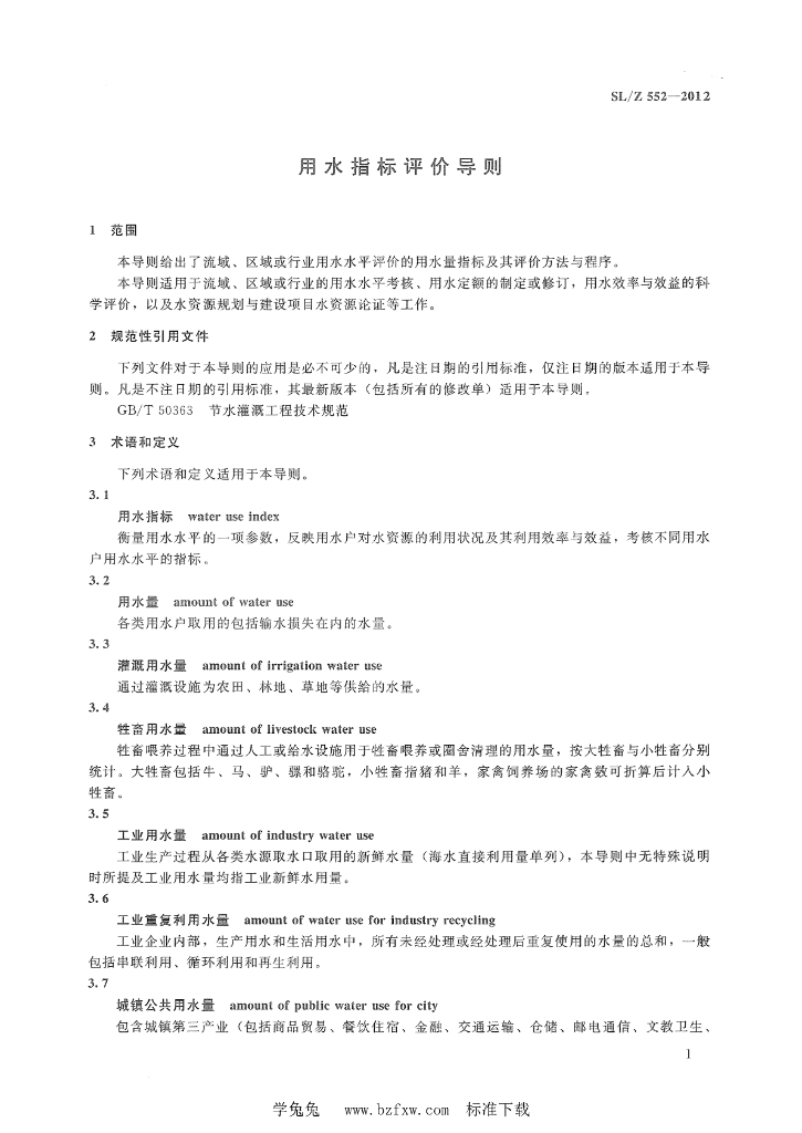 SL/Z 552-2012 用水指标评价导则